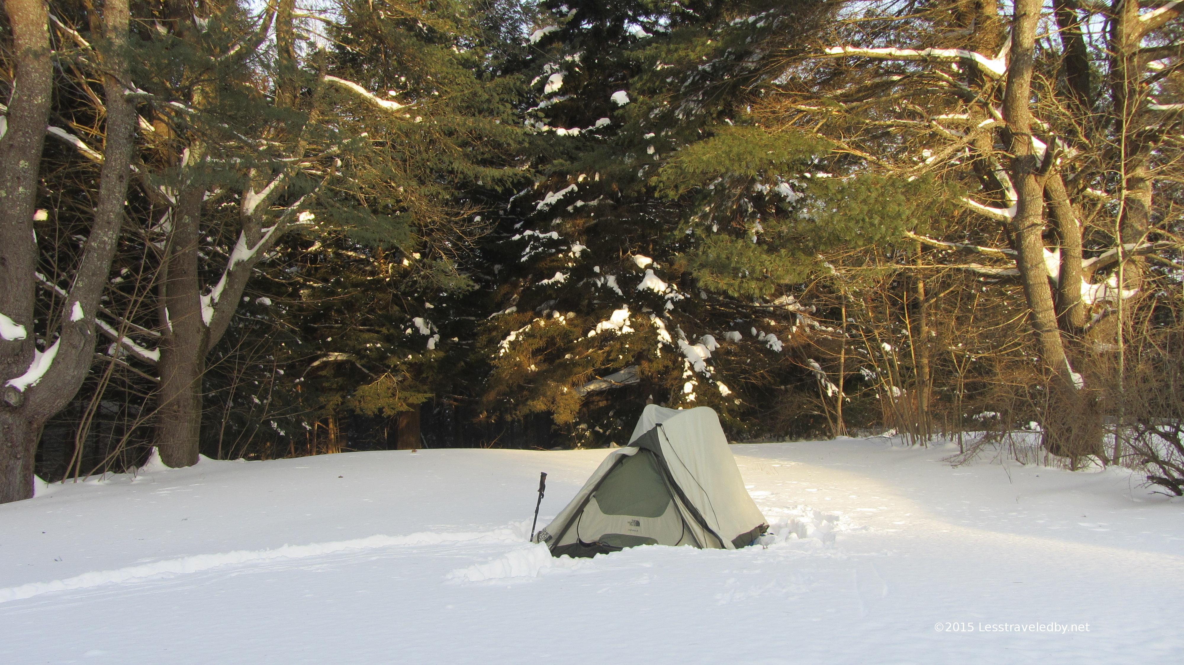 The sleeping was pretty good for most of the night. I had to step out of the tent a few times which definitely was an eye opener, but was able to get the quilts warmed up again each time. An hour or so before dawn I woke up and could feel the cold. Temperatures by this point had dropped towards -15°f and rearranging the bedding wasn’t doing the trick.