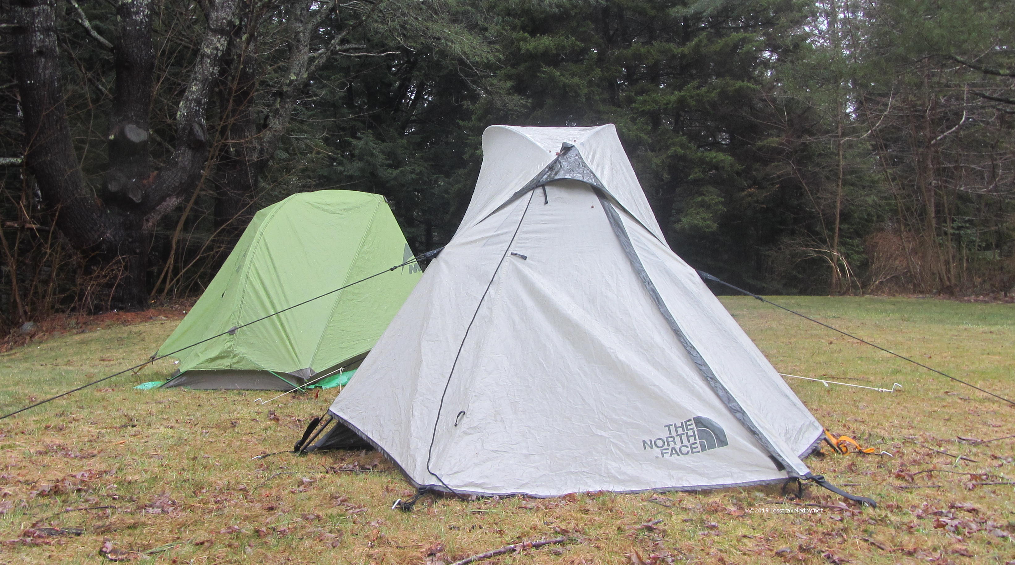 With a big storm forecast for overnight it seemed the perfect time to put a few tents through a serious rain test. I set up my last generation MSR Hubba which I use for most of my trips and the 10 year old TNF Tephra22 that has only been used for winter trips in the last 5 years or so. With 30 mph winds expected along with an inch or two of rain conditions were perfect for making sure these tents were ready for the upcoming back country season.