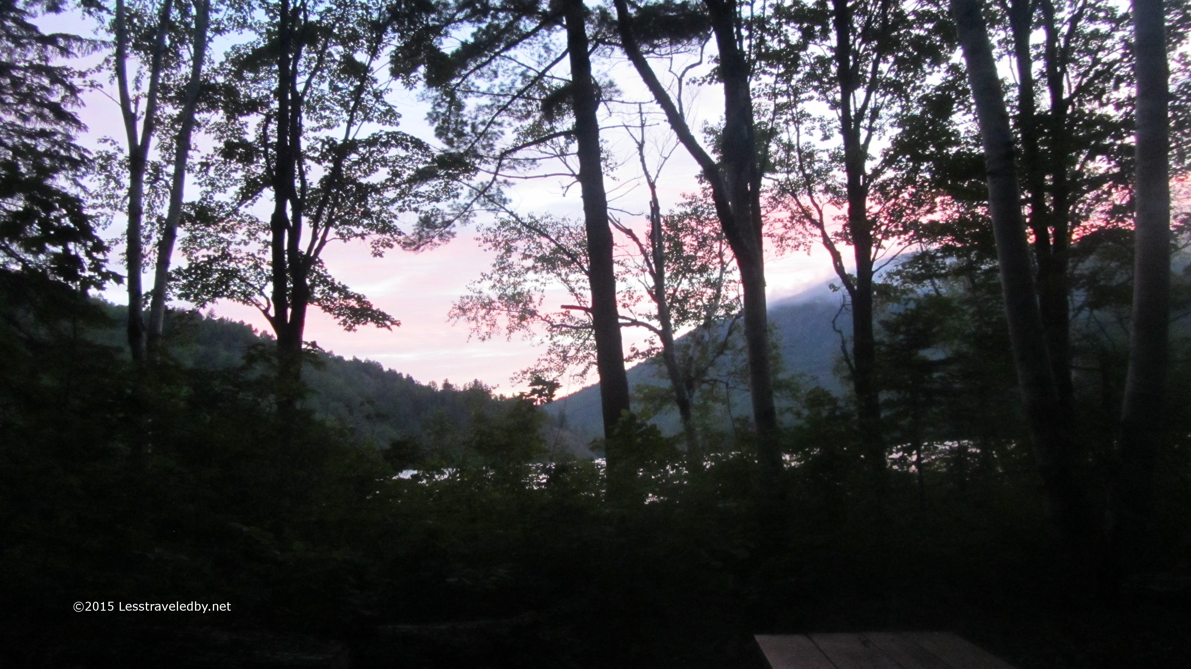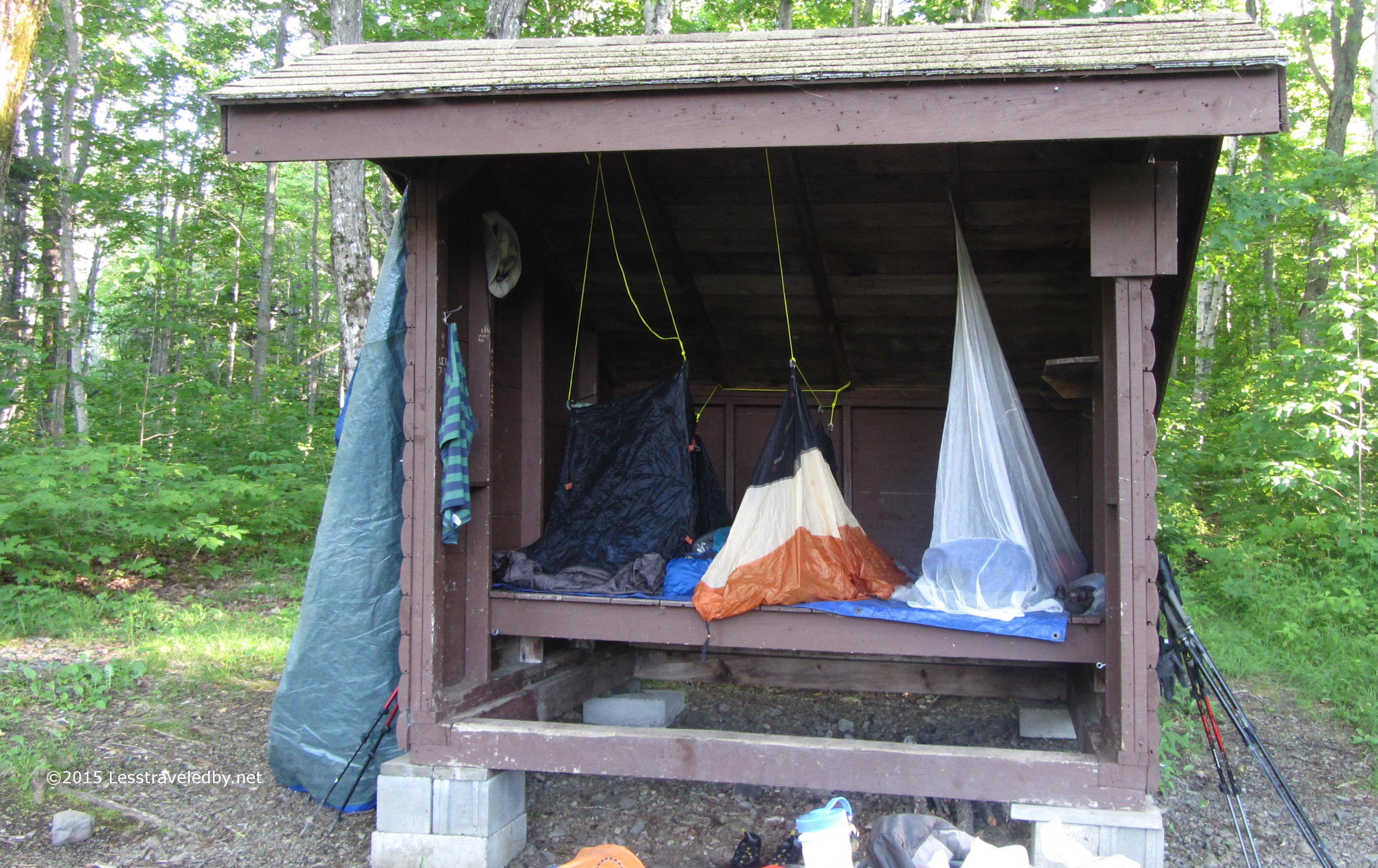 The lean to at Upper South Branch is advertised as having room for four, but it definitely is one of the smaller ones in the park. The boys used their tents as bivies while I hung my bug net. I had a tarp prerigged so it could easily be deployed if a storm came up overnight as was expected, but we left thing open to enjoy the view and the breeze.