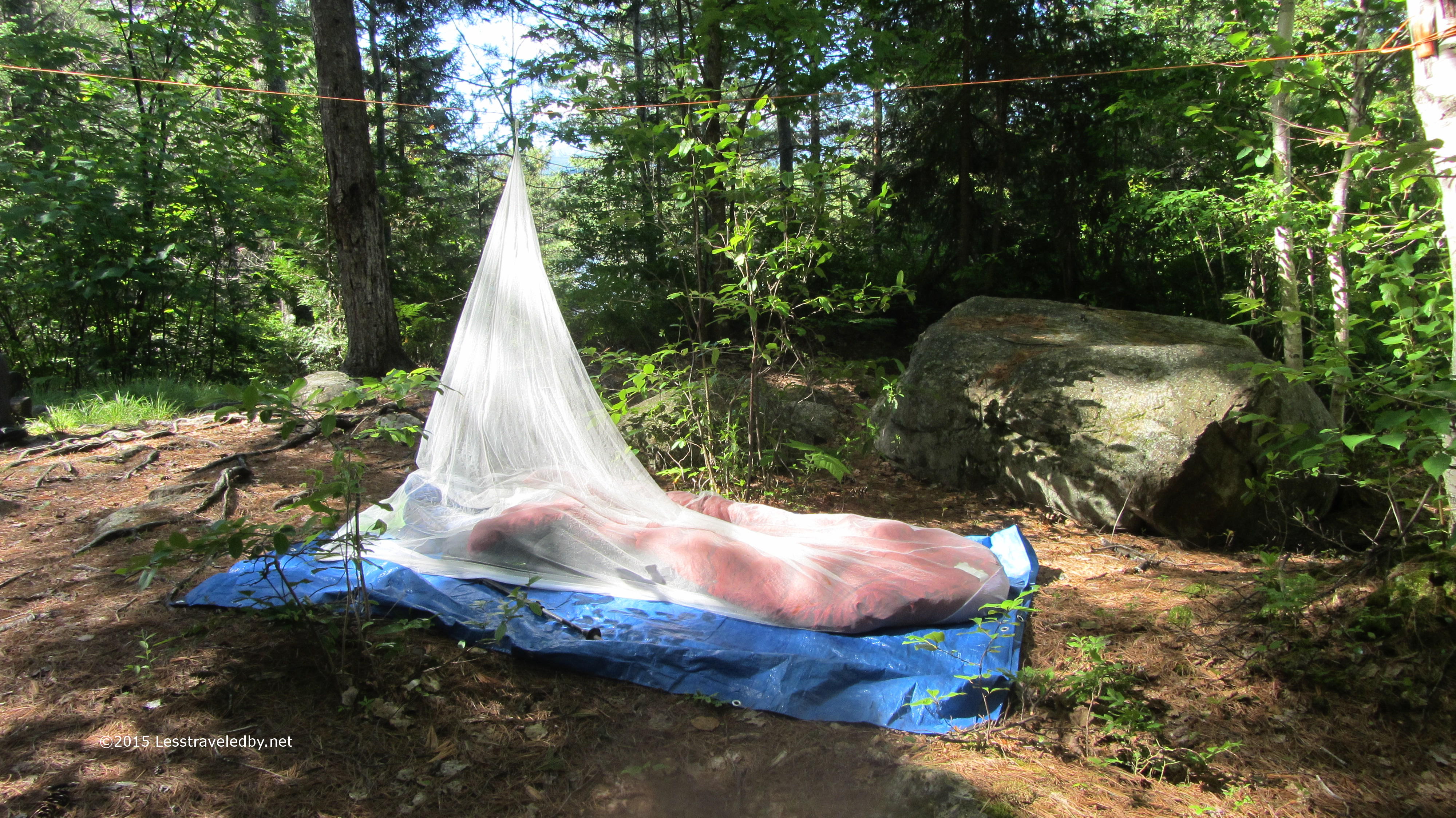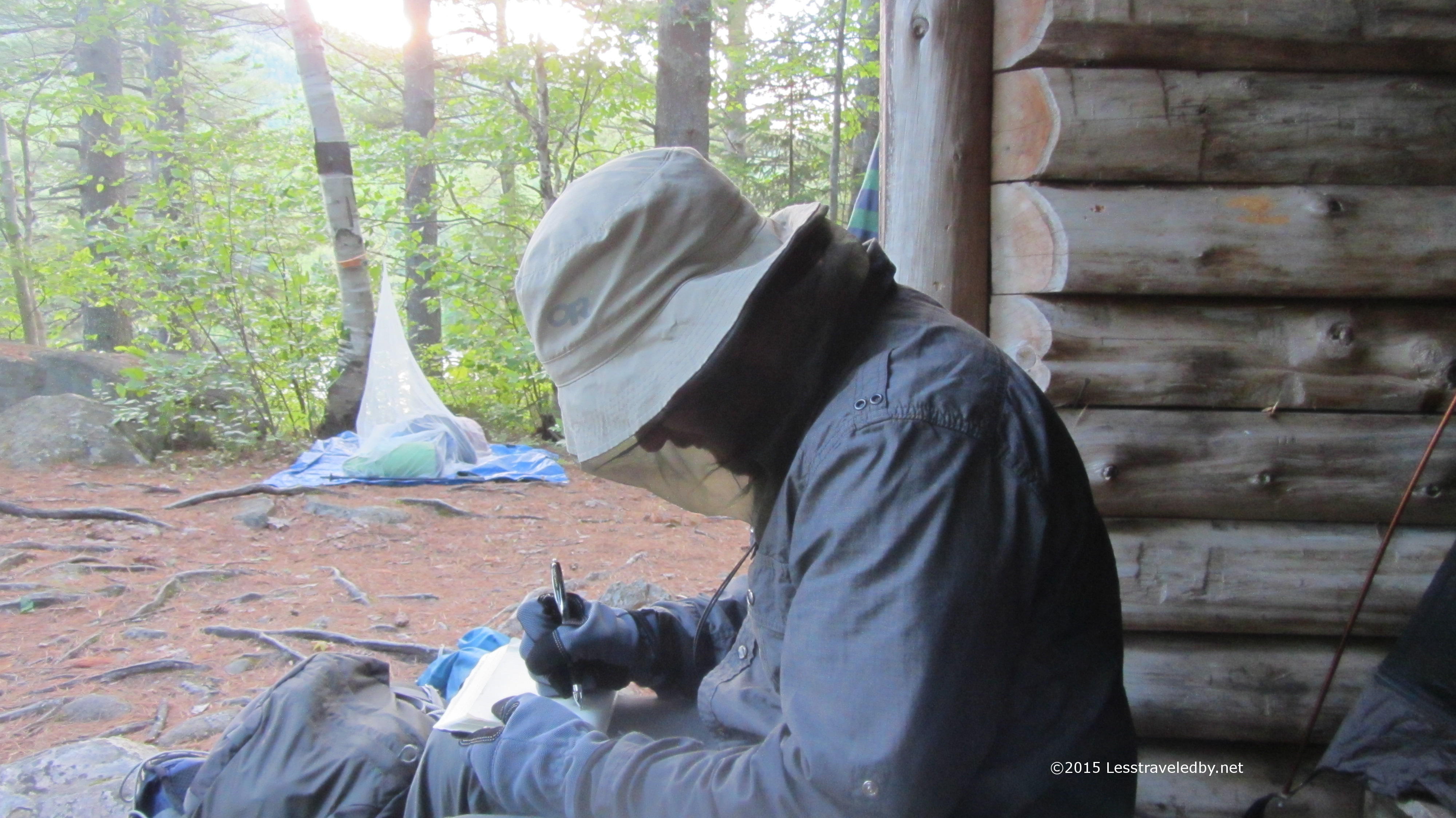 We did have one bug issue I couldn’t abide by. There were a couple of wasp nests inside the lean to. I’m a pretty big stickler for following rules, but opted to be an outlaw in this case and sleep outside. The price was a vicious no-see-em attack on the second night, but I’d never have been able to sleep next to those wasps.