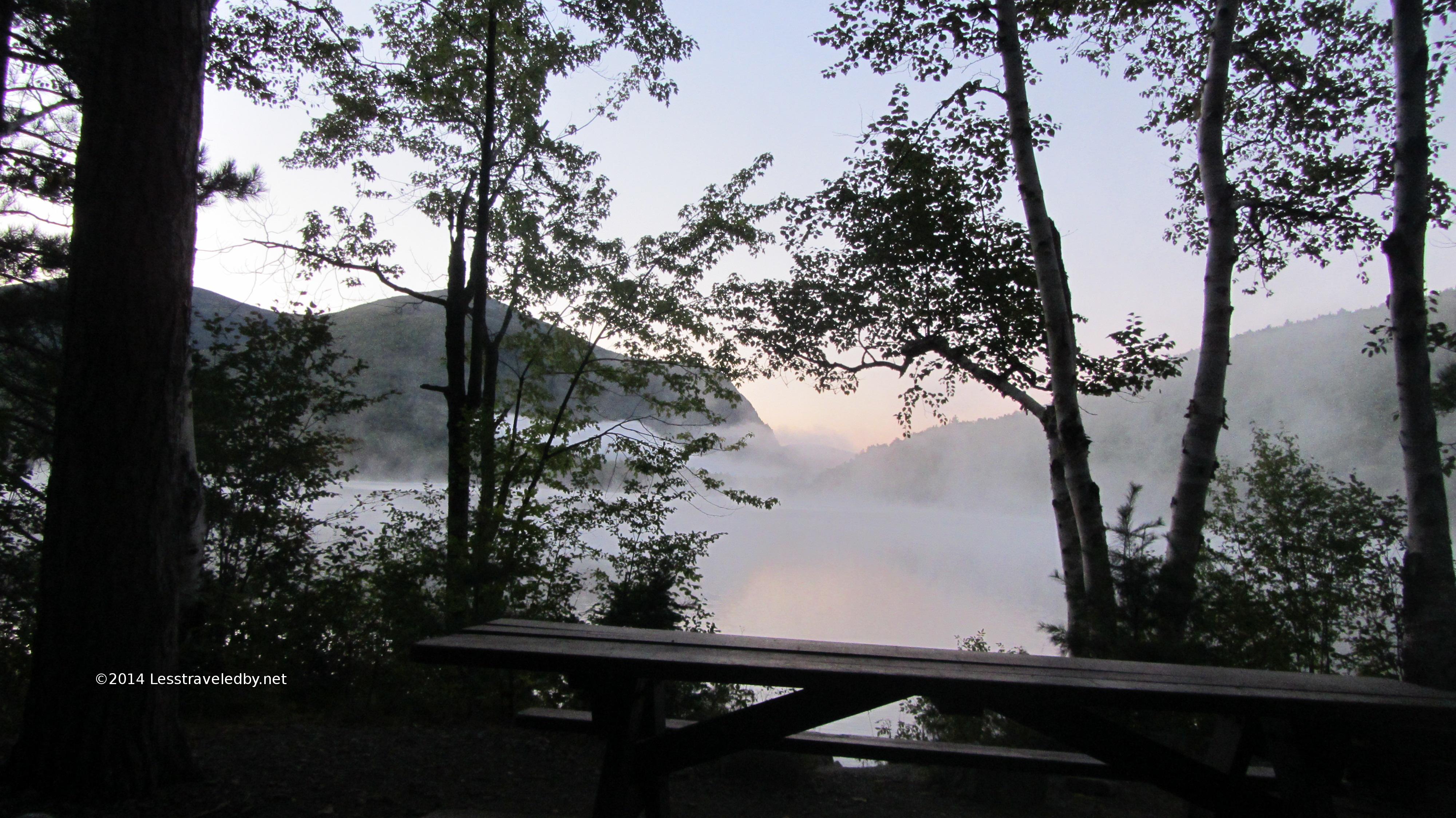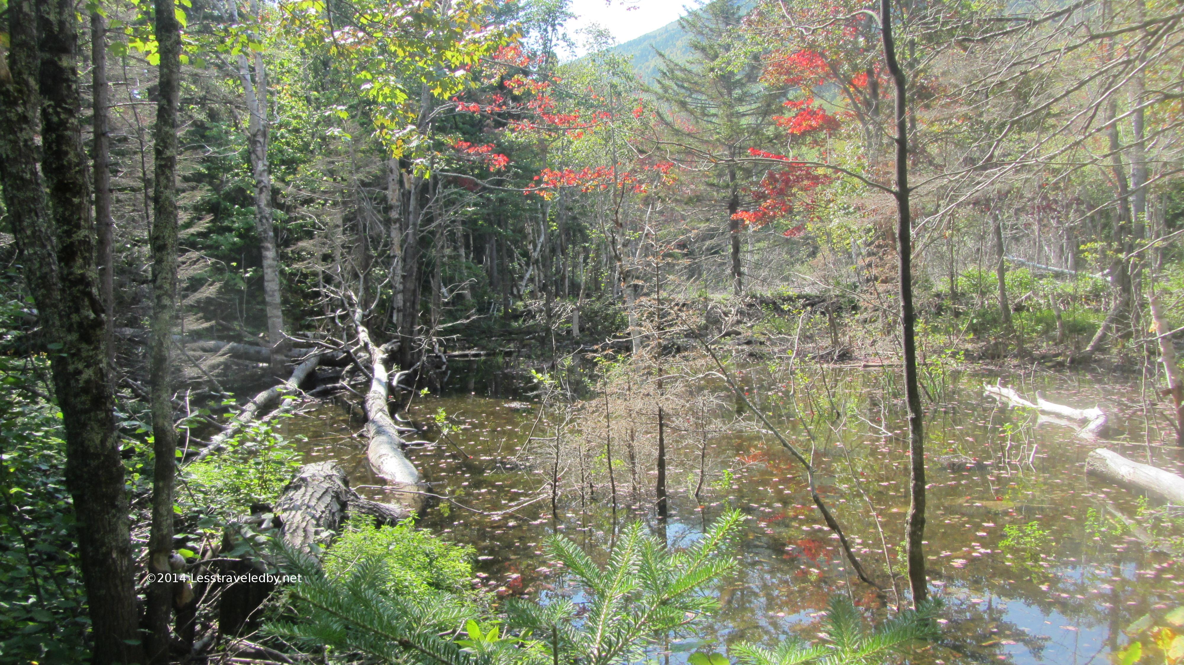 I arrived at the South Branch Pond campground by 2p and while there was a bit of a breeze blowing across the lake the only way to describe the day was sweltering. By Maine standards and especially for September it was just way too hot. Temperature was in the low 90s and so was the humidity from the feel of it. I decided to be careful and spend an hour in the shade at the campground. I feasted on a variety of trail treats and filtered yet more water.