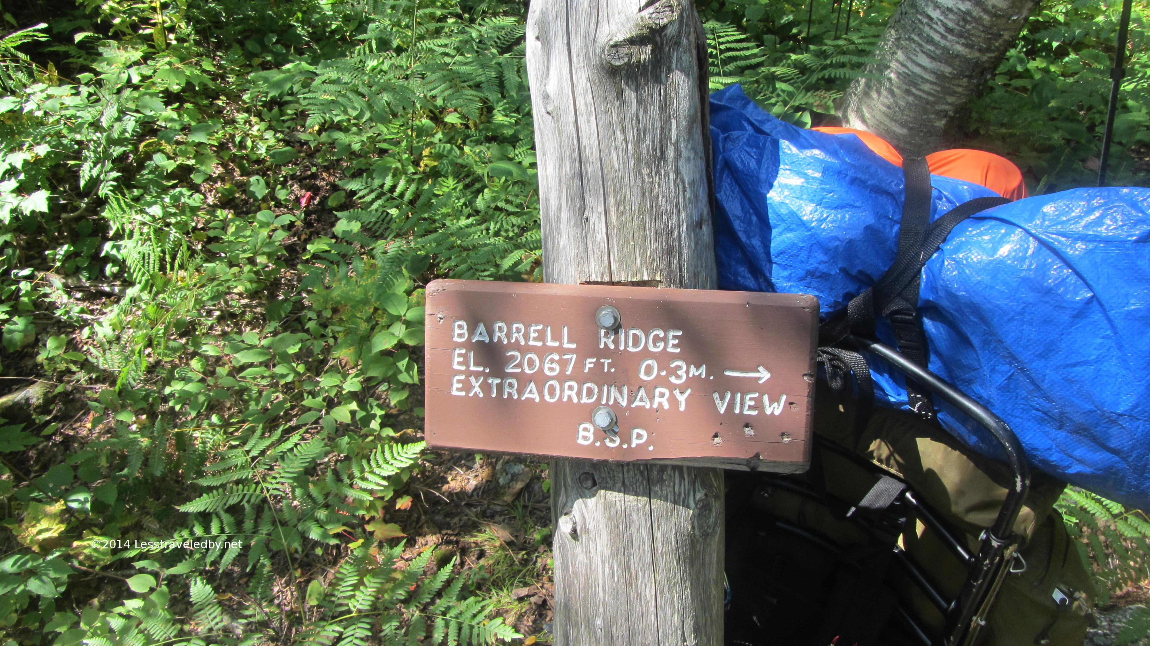 I stopped for some feeding and pondering at this sign. Things were really hot and steamy by late morning, but this sign was made to tempt hikers to the top. I poked my head around the corner to look and could tell that .3 miles was a serious climb. Conditions being what they were I had to leave this view on my to do list. In talking with rangers later they confirmed it is both a hard climb from this point and an extraordinary view.