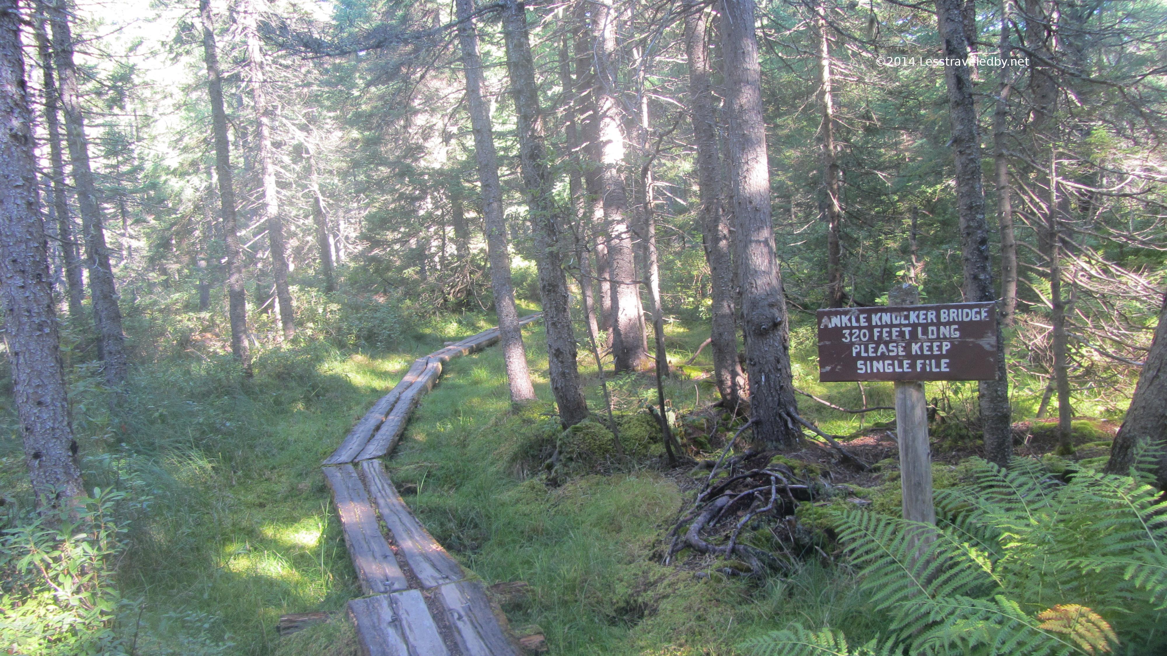 The long bog board bridge headed up towards the ranger cabin at Russell Pond