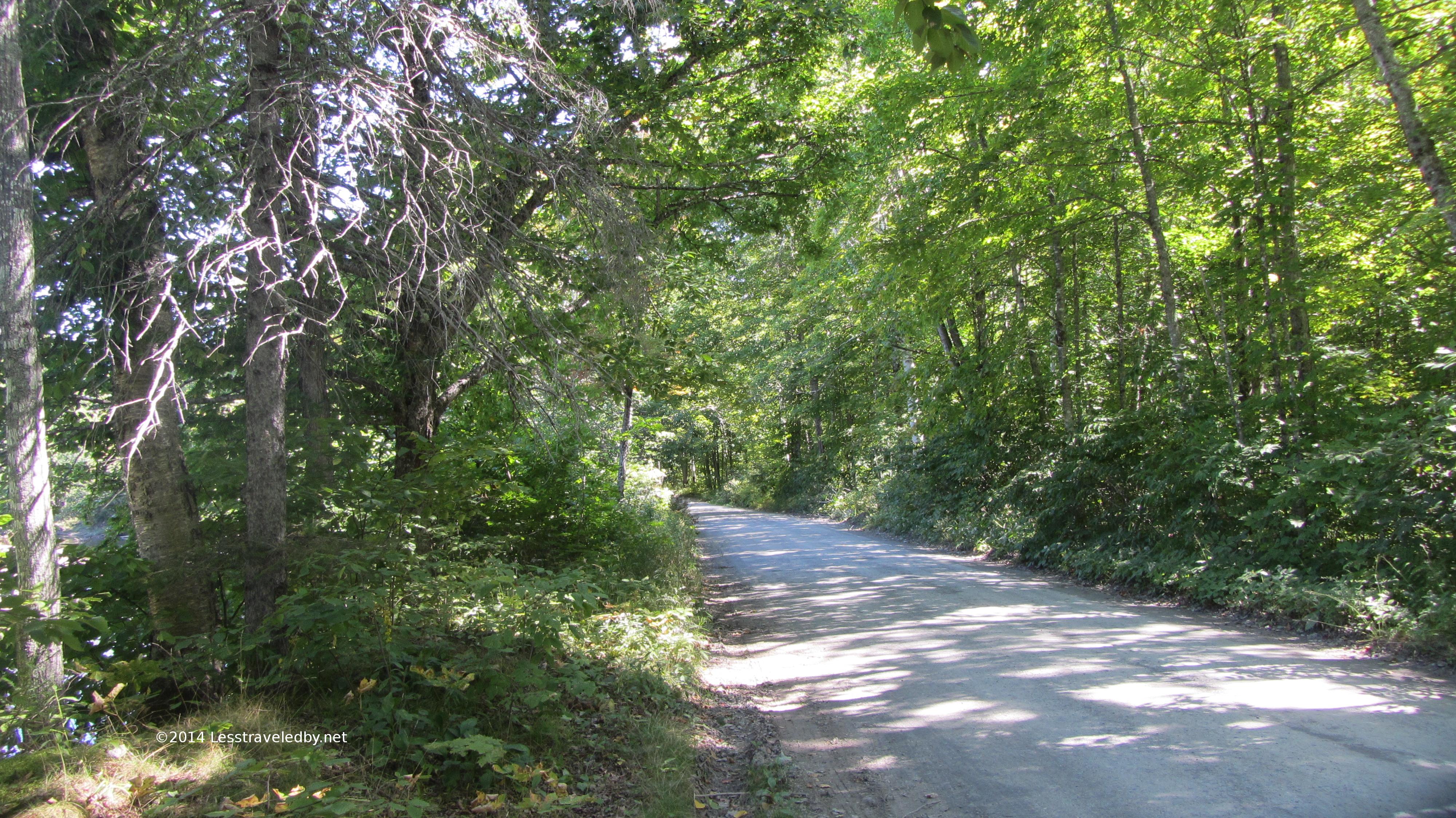 It also allowed some time looking up towards the first climb. That is just one of the lower knobs with the peak of Horse Mt behind the trees on the left. Still it put the road walk in perspective so I enjoyed it instead of complaining. After a quick check in with the ranger at the gate it was great to finish with the road and get out into the forest.