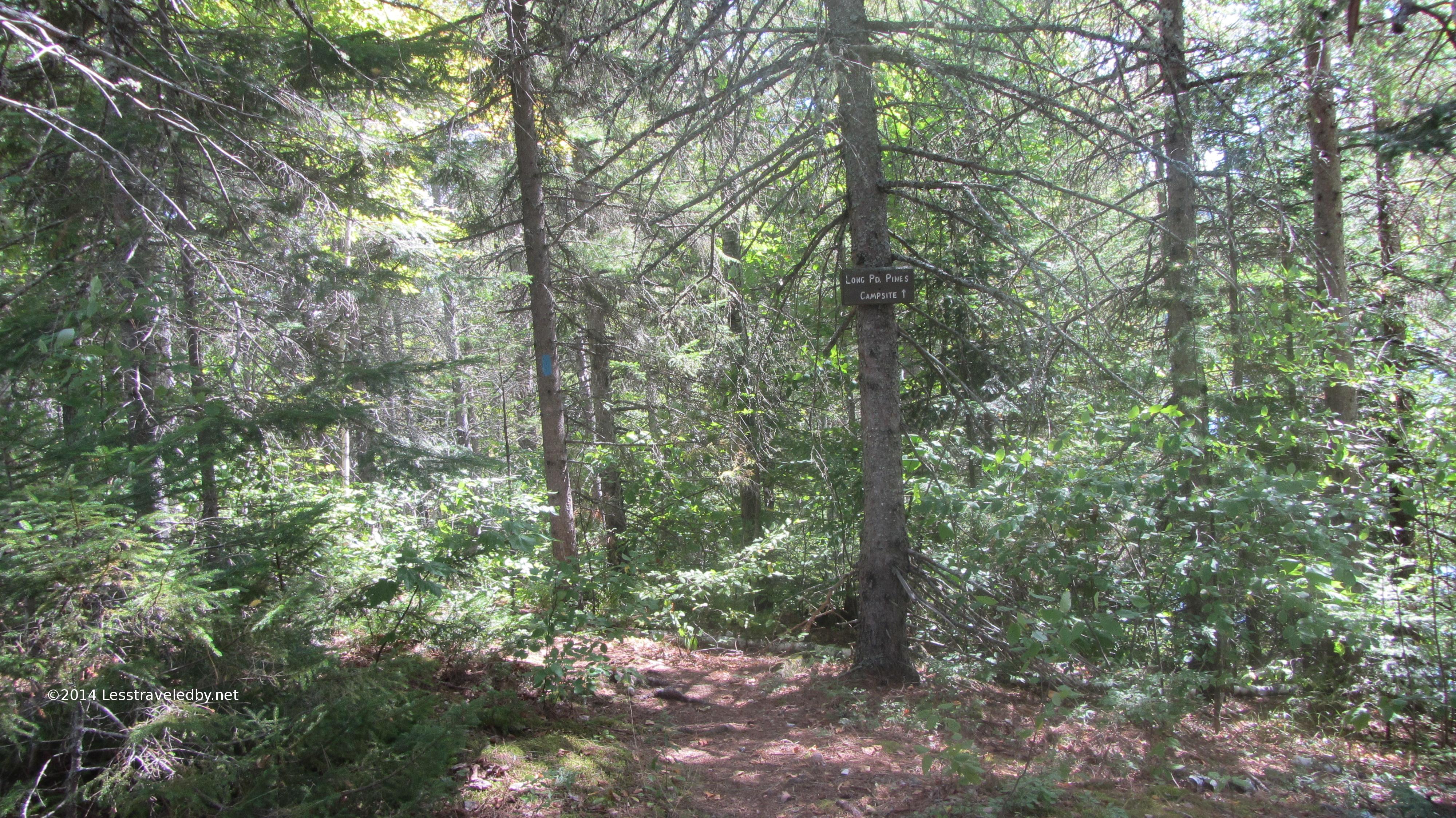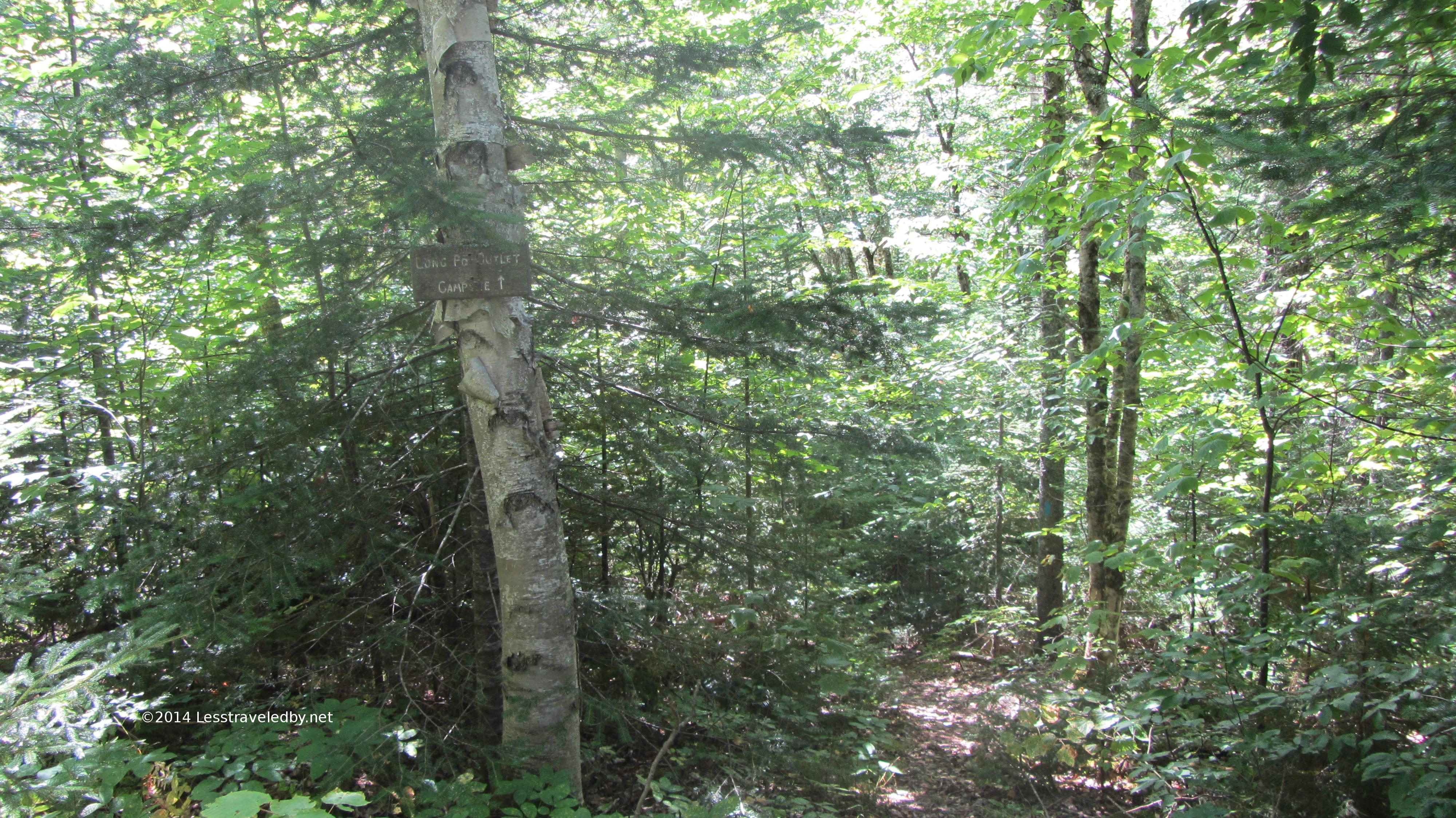 If you’re visiting this area be warned that while intersections are well marked with big signs some of the camp sites are not. This is the side trail to the Long Pond Outlet site. That sign doesn’t exactly pop out at you even if you are looking for it.