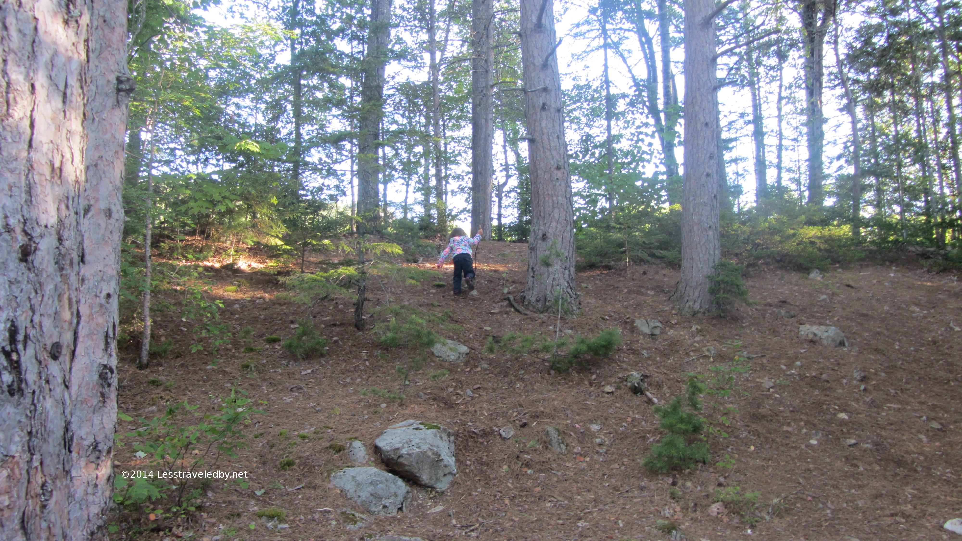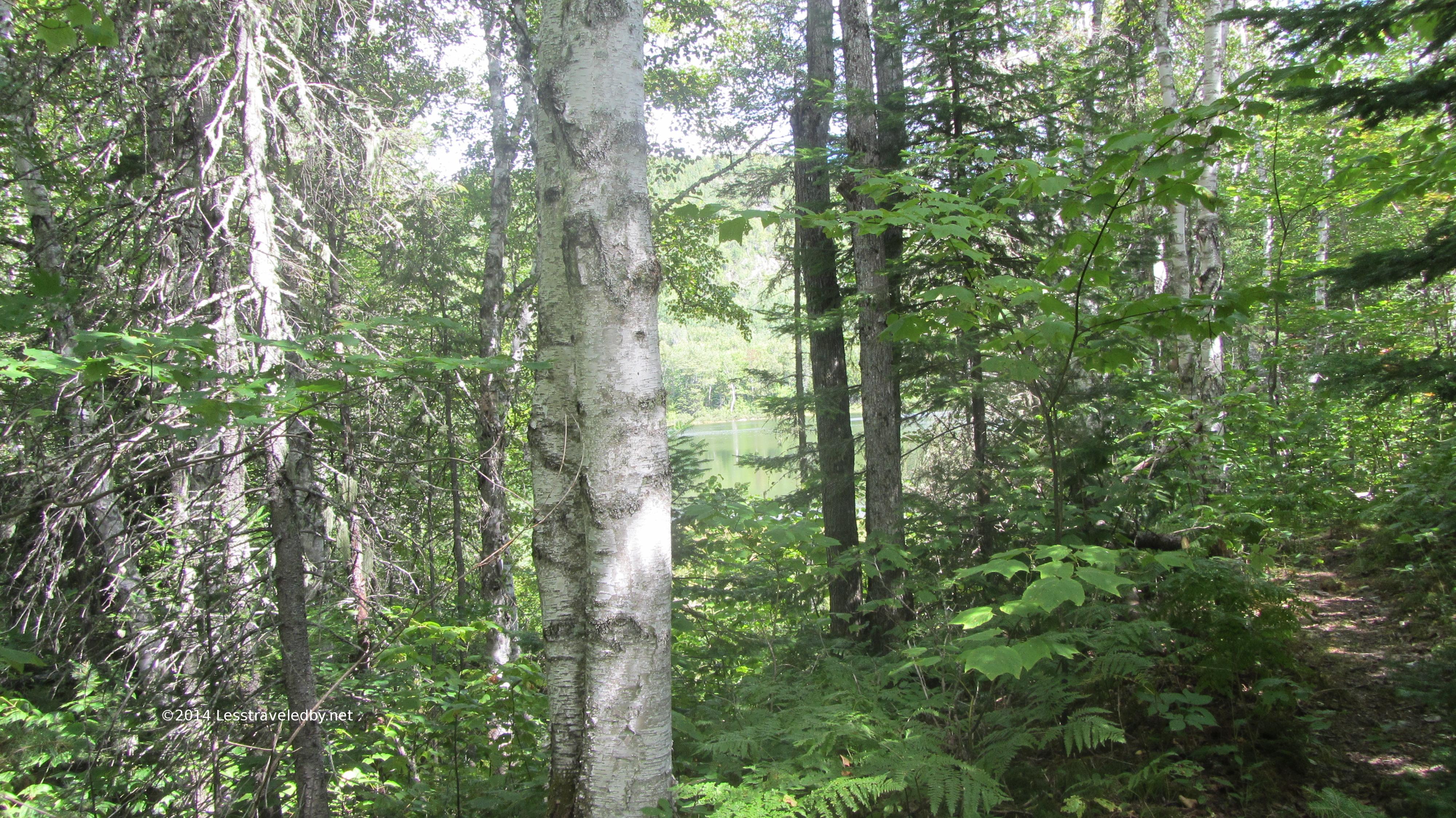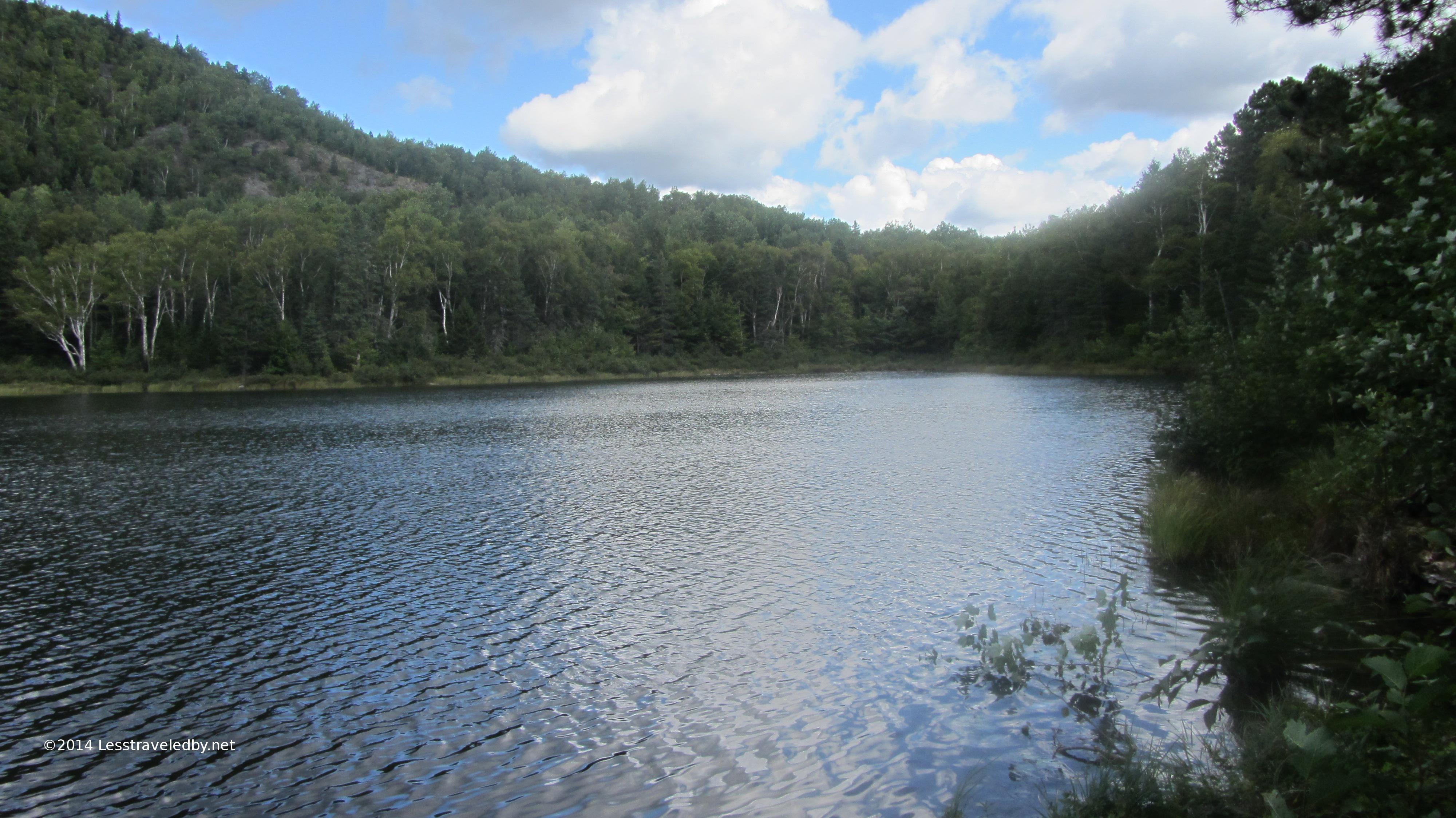 Less than a mile from our camp brought us to the Five Ponds Trail intersection. There were some muddy sections on this part of the trail with one small water crossing, but once we turned the corner most of our route was on top of a long esker. Created by glaciers an esker is a long deposit of sand and gravel and this one created High Pond by trapping water above it. It made for an interesting walk with ponds visible on both sides at times.
