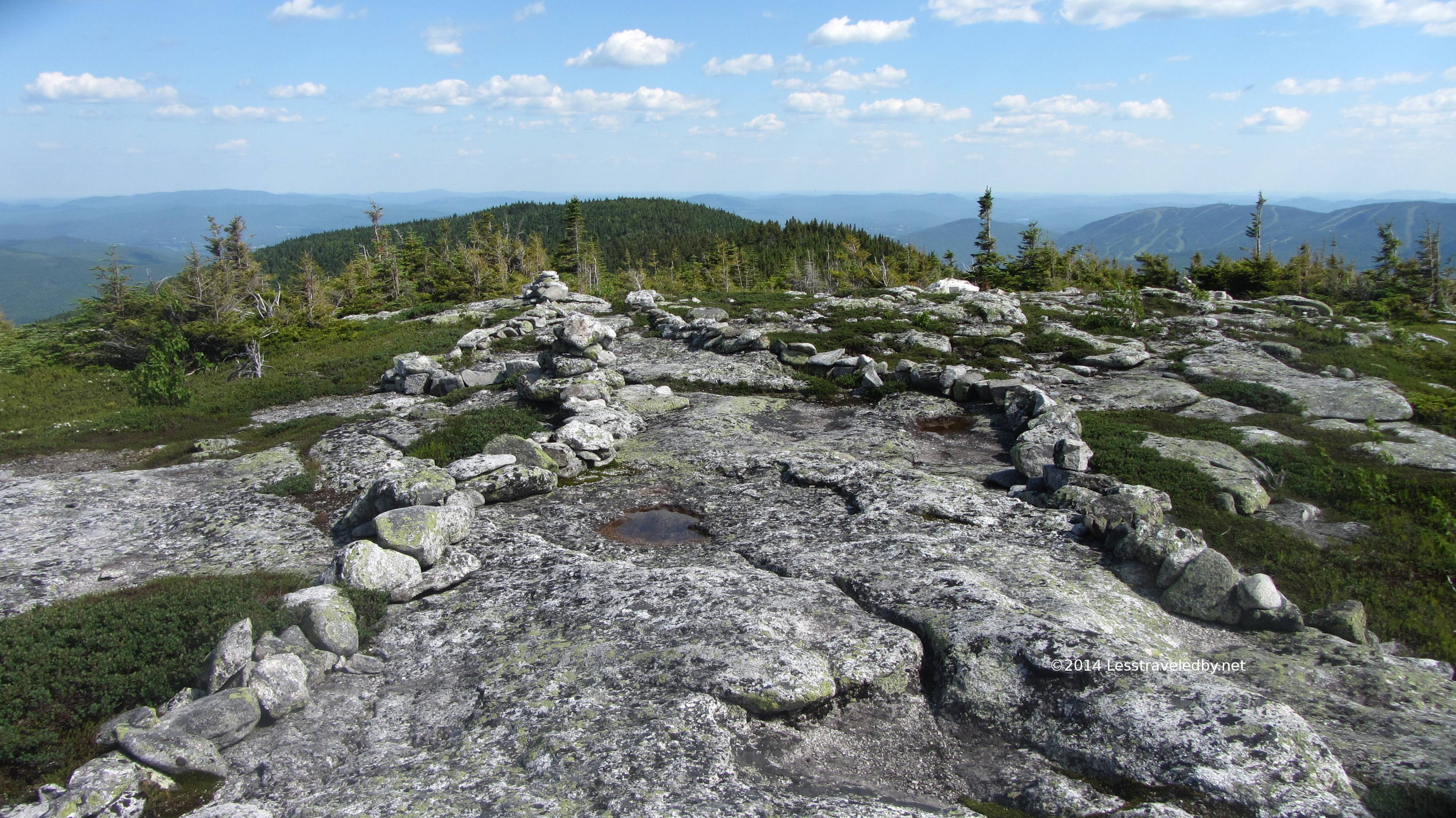 The top of Sunday River Whitecap is completely without tree cover. The sensitive terrain is protected with a series of board walks and scree trails to limit foot impact. Life is hard for plants up here even without people trampling them so the AMC has done a lot of work to prevent damage while still allowing access to the views.