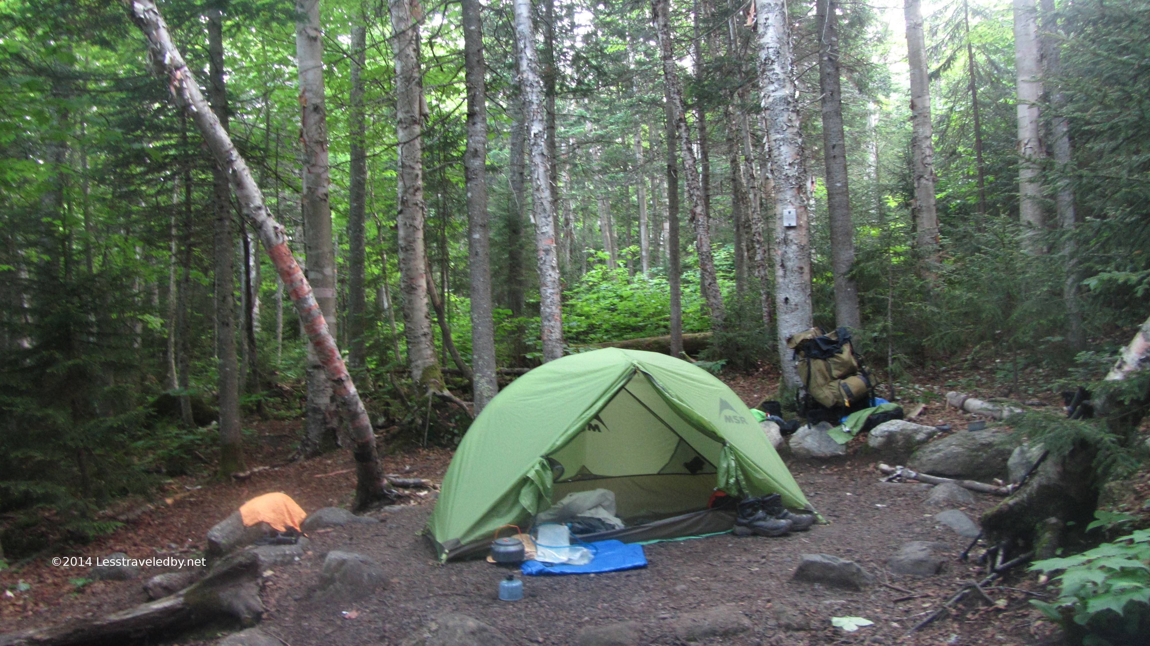 I stopped at Sargent Brook to filter some water. The creek at this site is small even this time of year but was still flowing when I was up there last October and seems pretty reliable. This is a good spot to top off before heading up Sunday River Whitecap. The camp sites are functional, but as with most all of the sites on the loop without view.