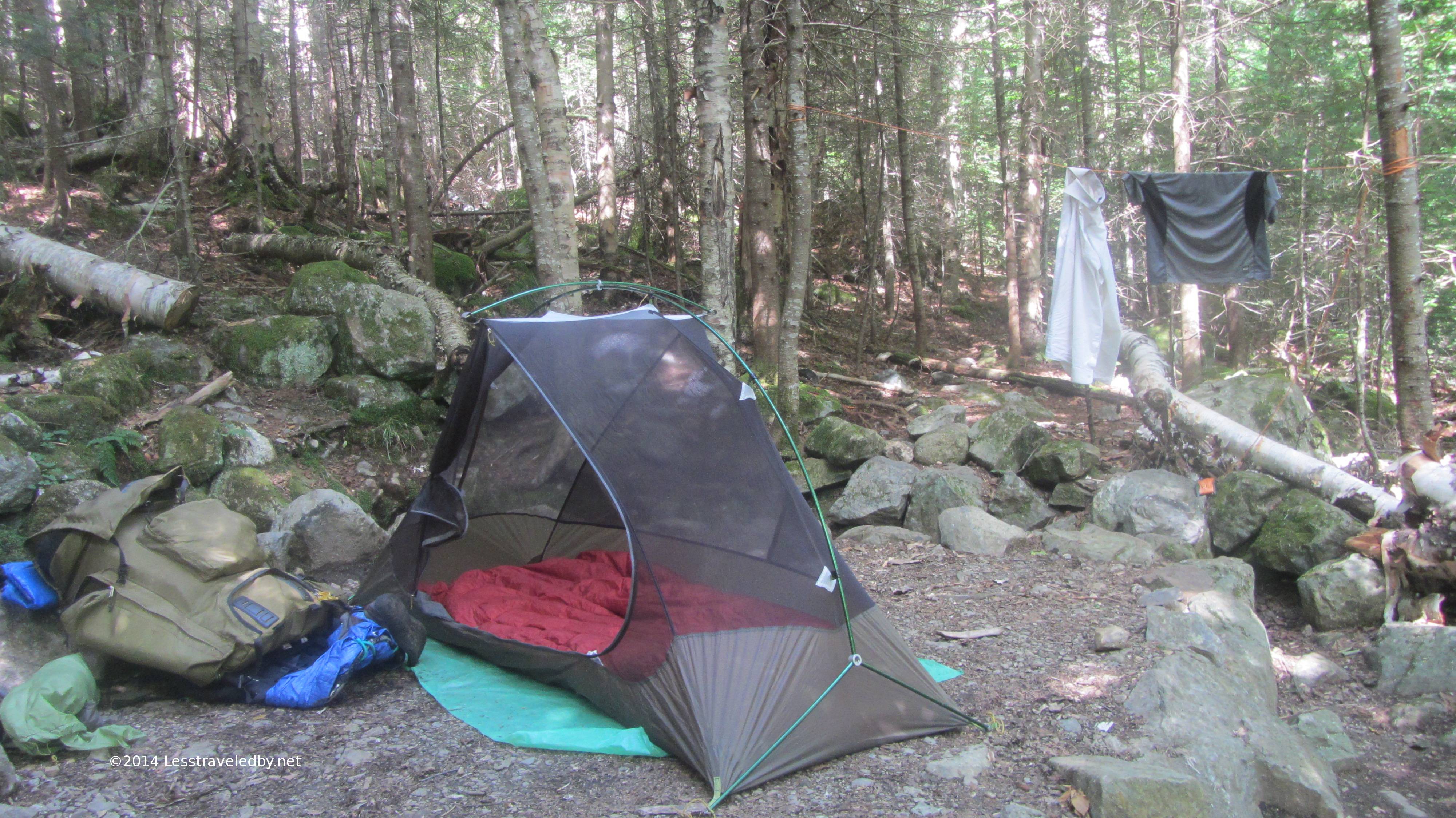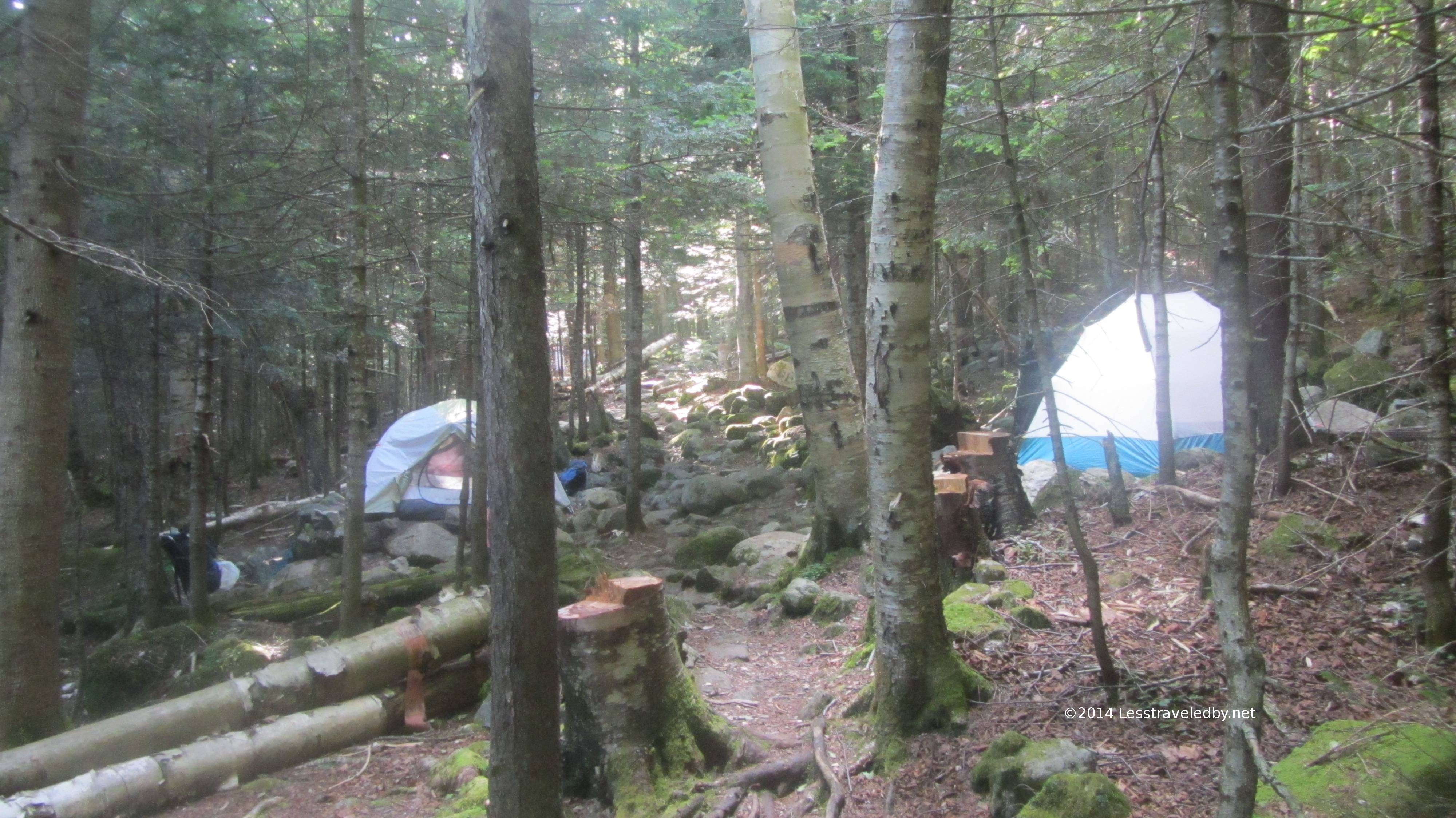 Seeing my doubts she led me out to the farthest tent site and I handed over my $8 on the spot. As usual the AMC builds great tent pads with serious drainage to handle the weather the mountains get. Being on the end this spot was more removed from the other sites.