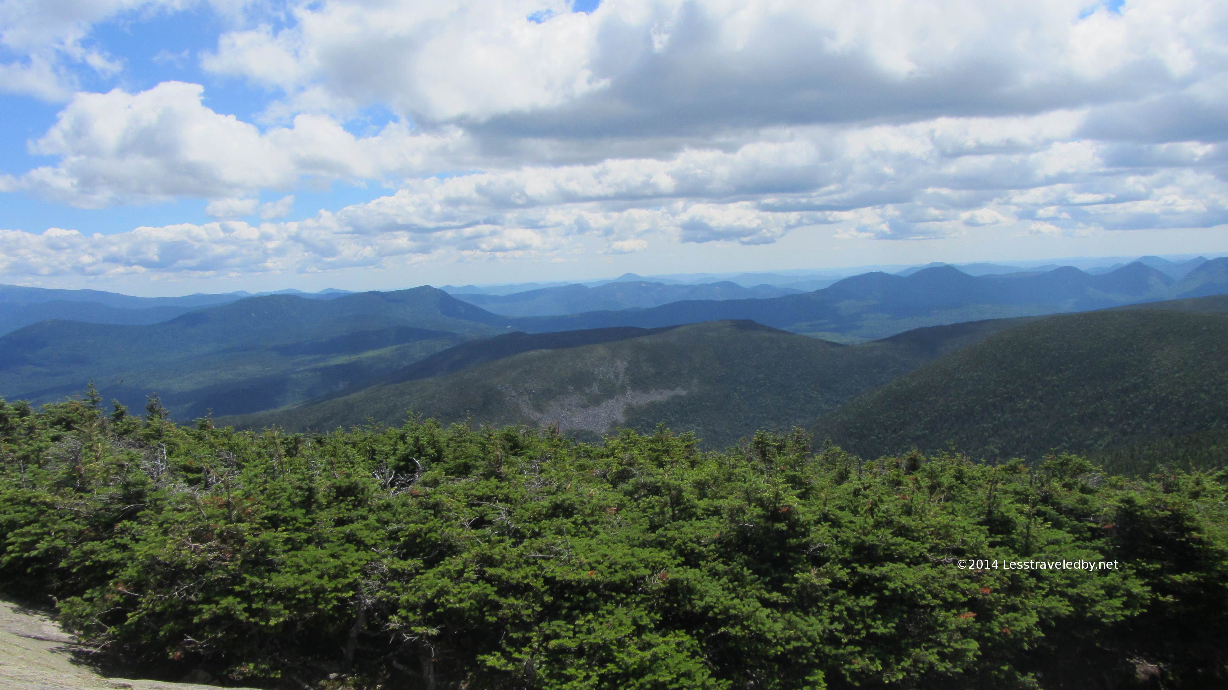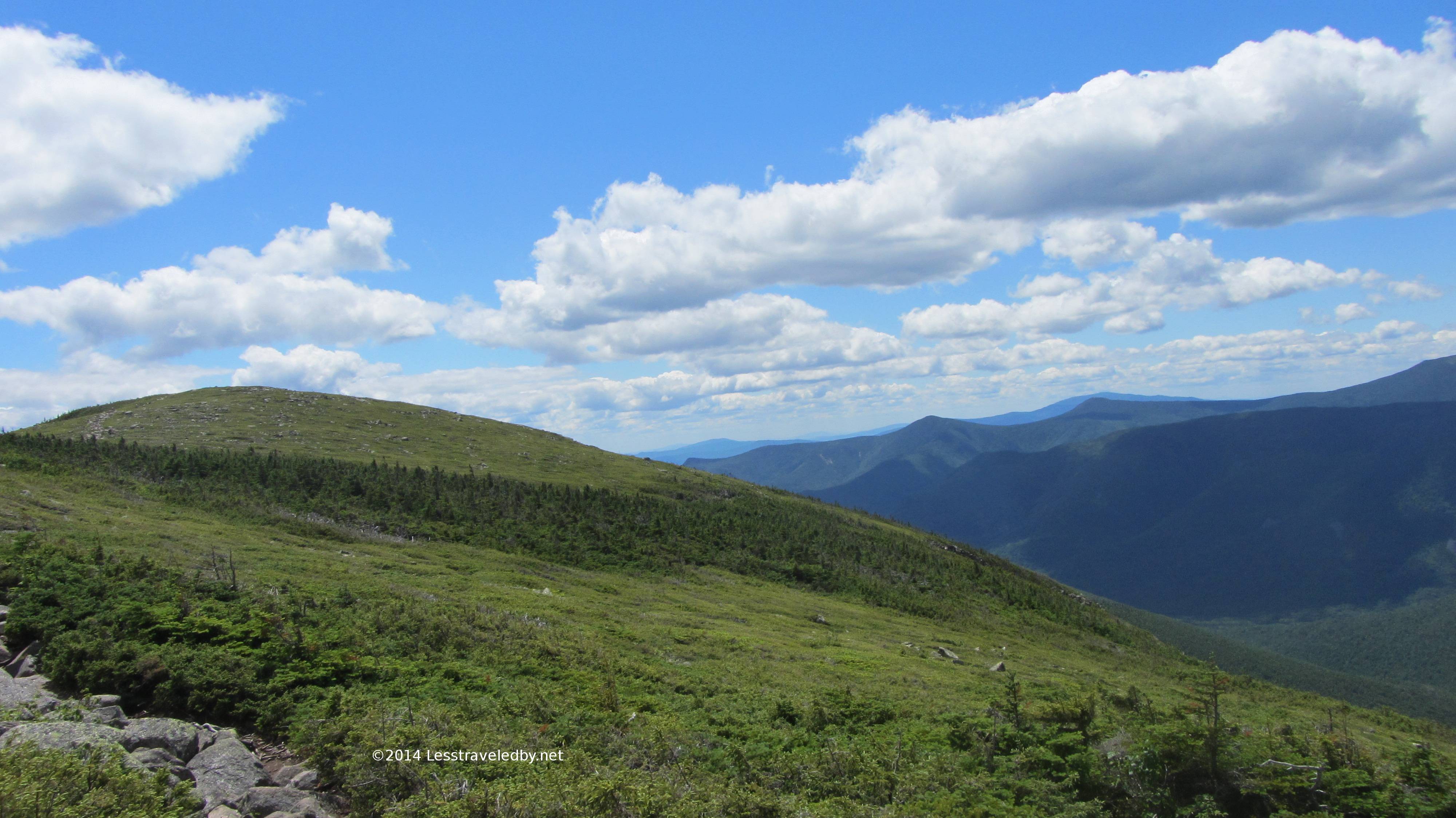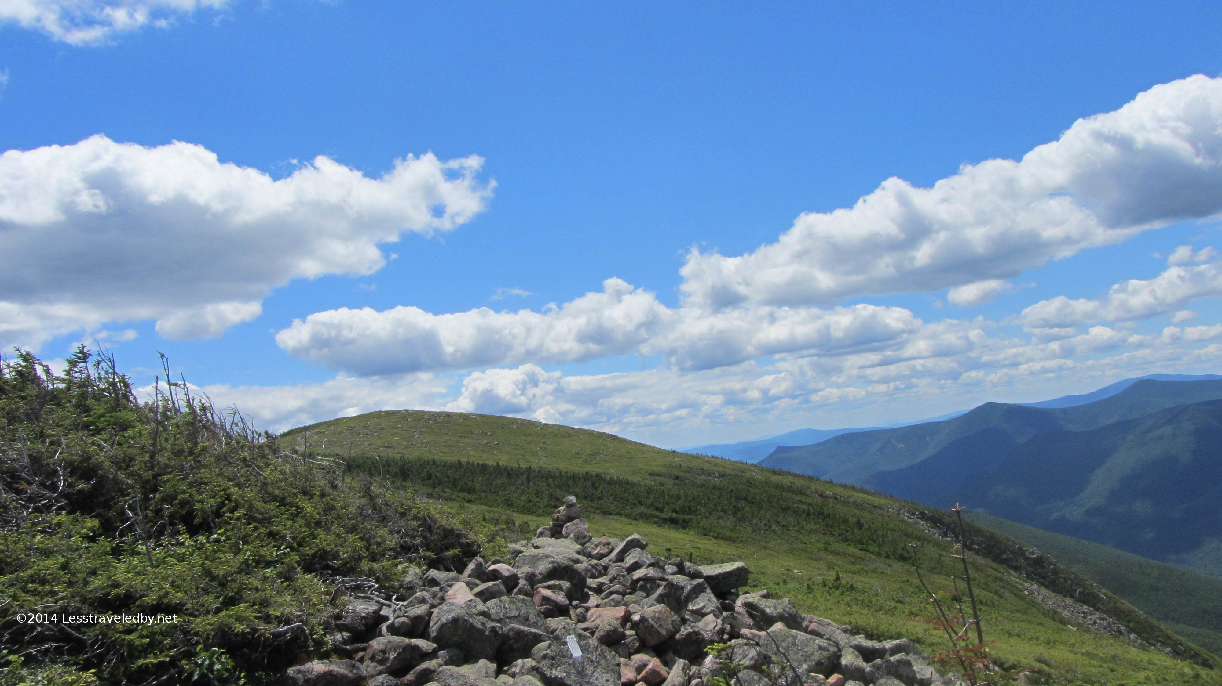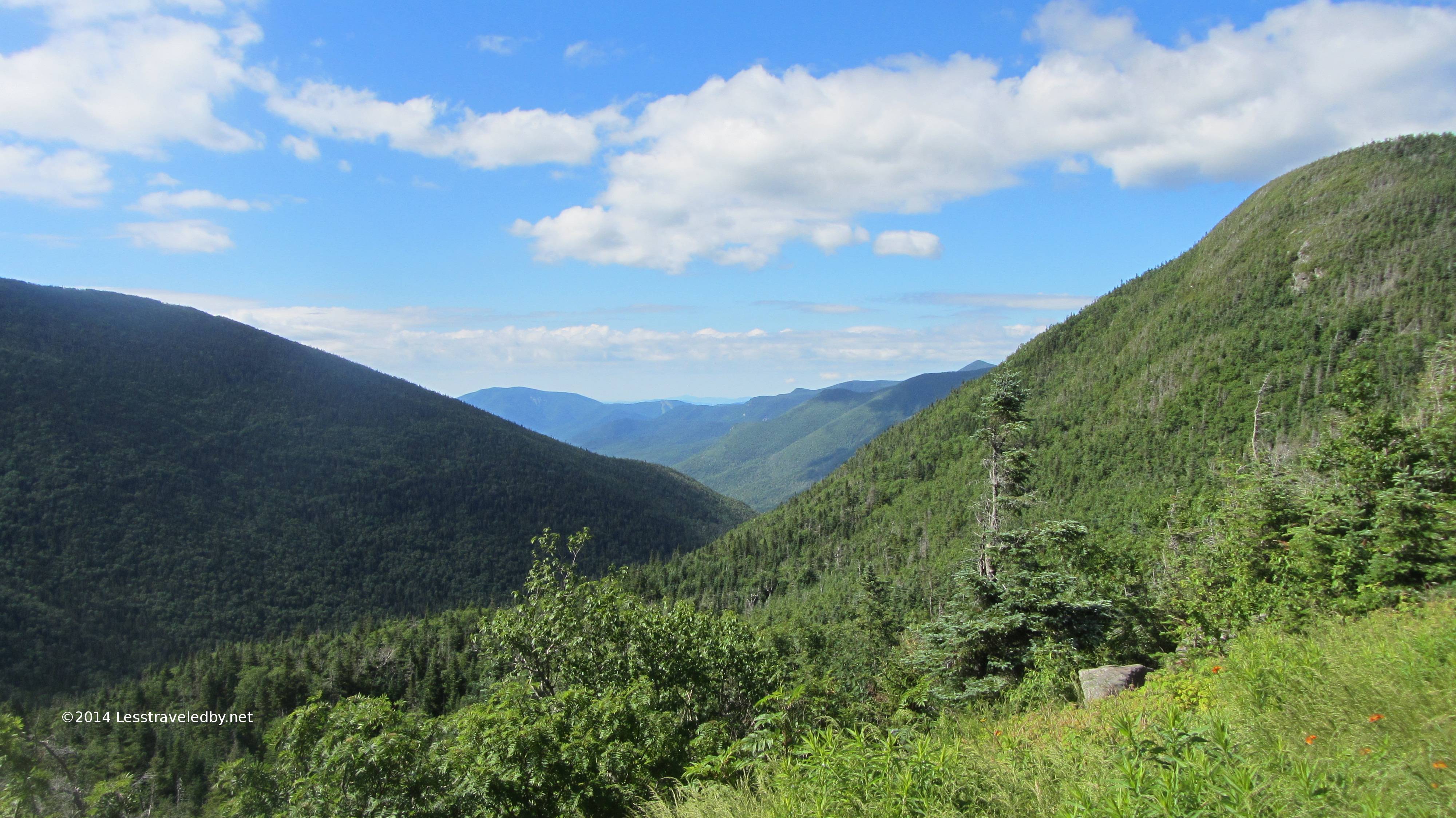 Just in case the next climb sapped my will to live I also stopped to enjoy the view looking back towards where I’d come in the day before. I came up the right side of the valley in the foreground that morning, but that large valley beyond is where Franconia Brook runs and the trail I’d been on the day before. In the far distance I believe that is Loon Mt ski runs that can just barely be made out.