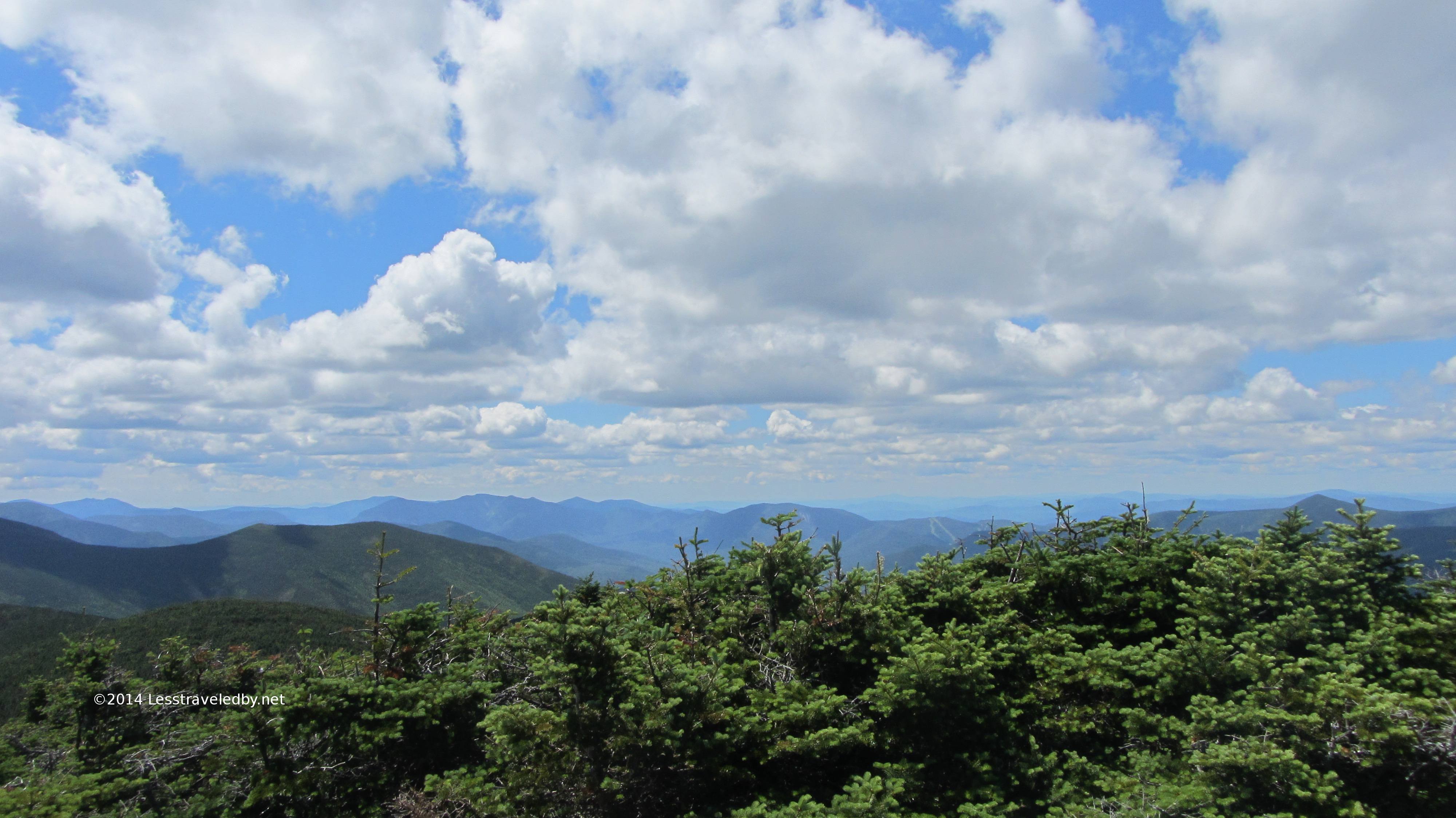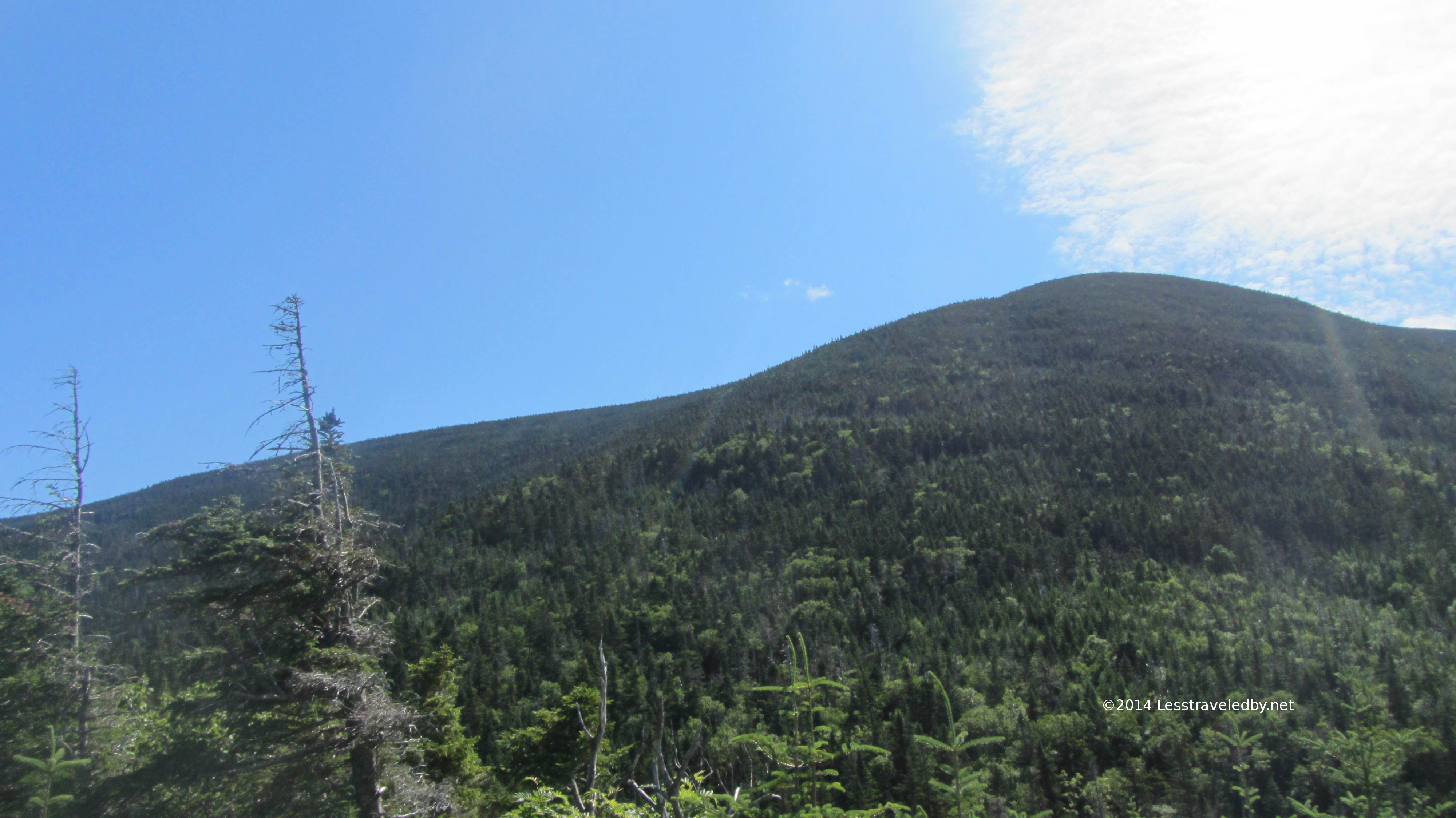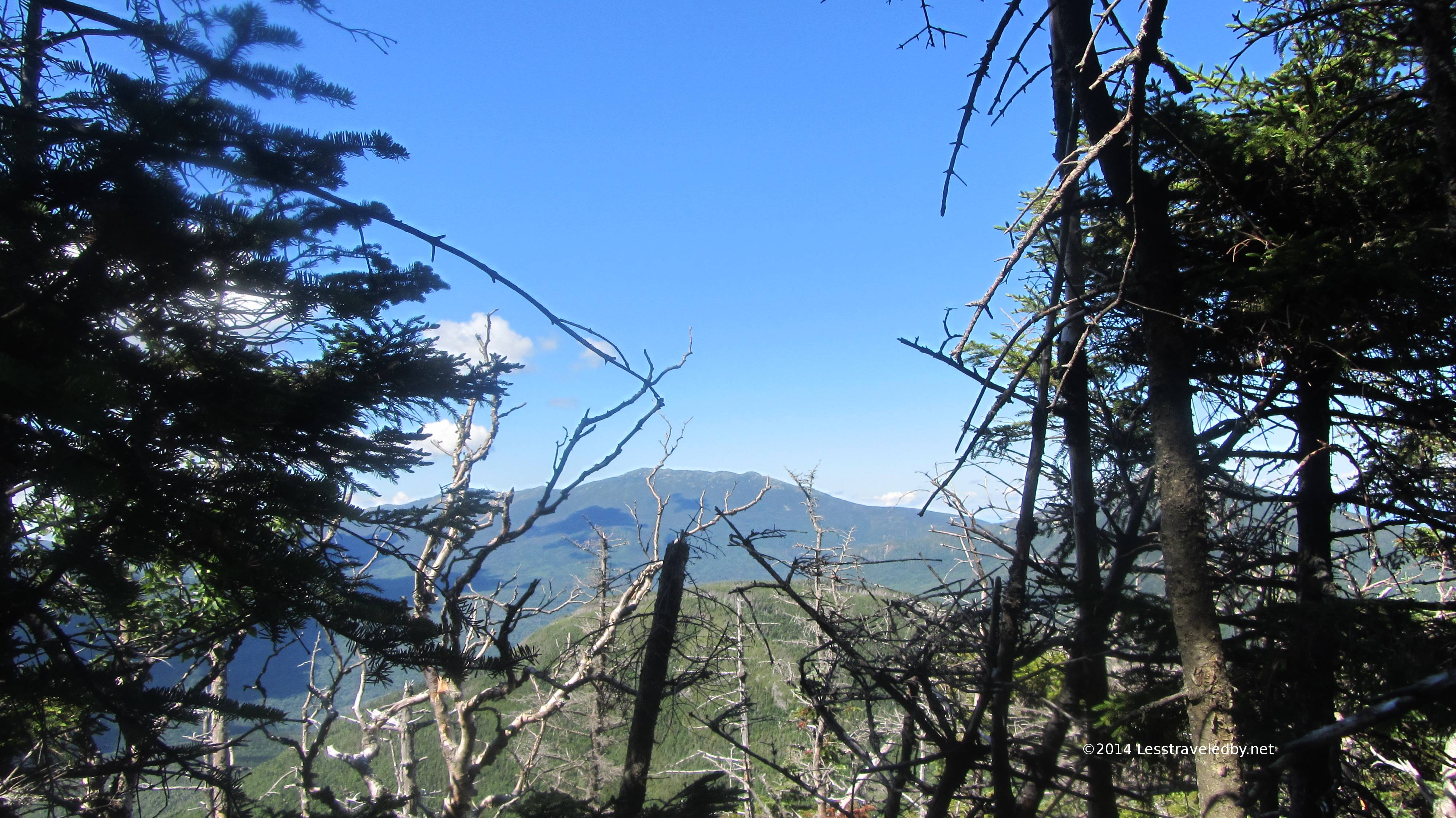 Just in case the next climb sapped my will to live I also stopped to enjoy the view looking back towards where I’d come in the day before. I came up the right side of the valley in the foreground that morning, but that large valley beyond is where Franconia Brook runs and the trail I’d been on the day before. In the far distance I believe that is Loon Mt ski runs that can just barely be made out.