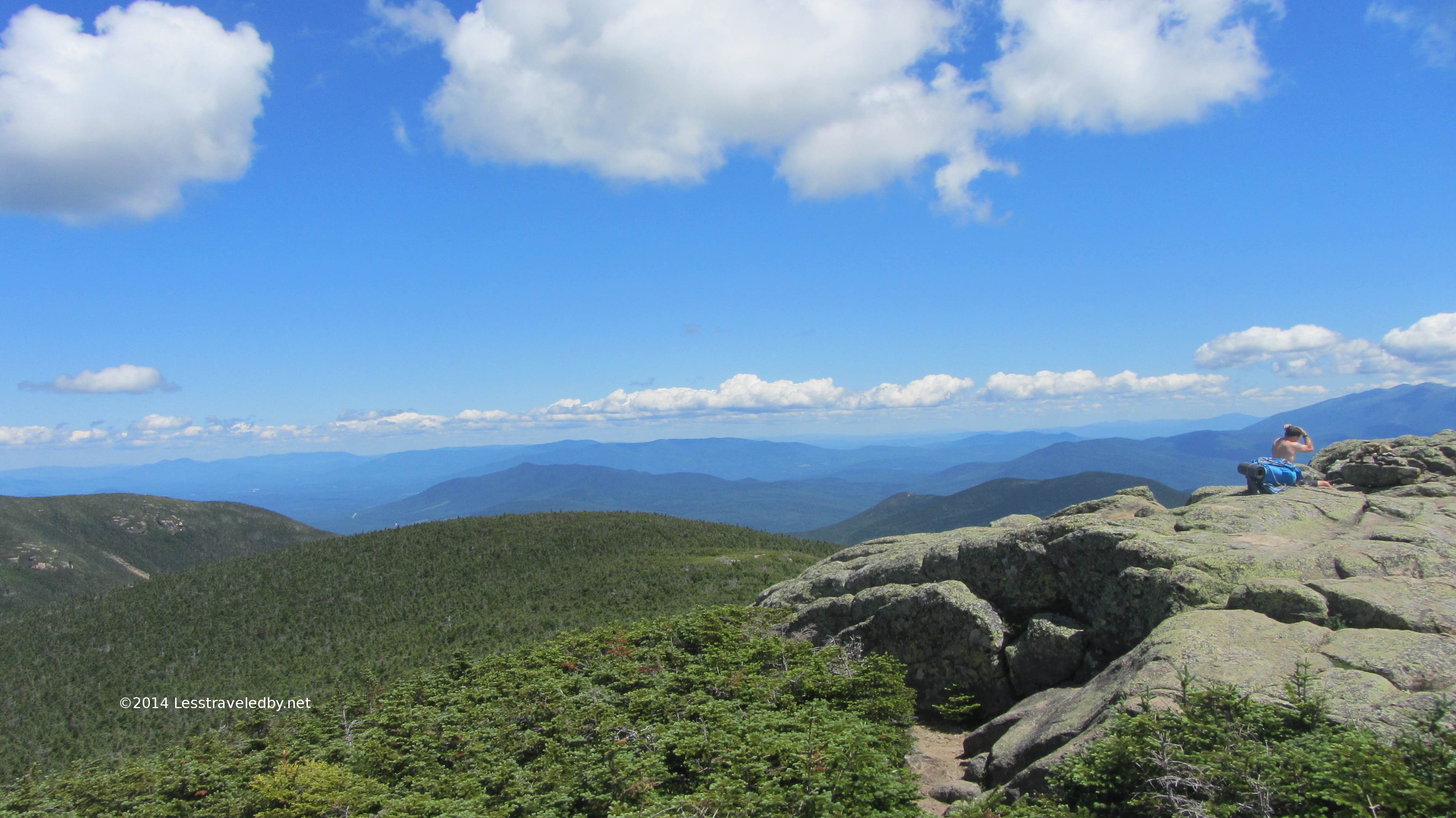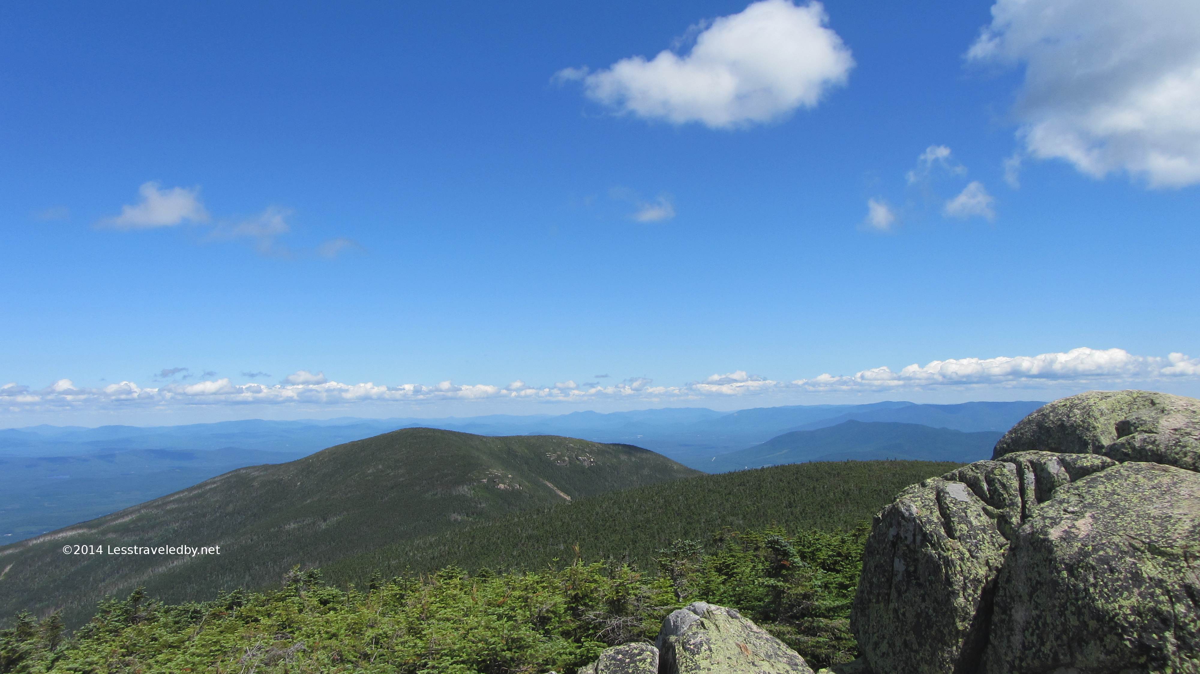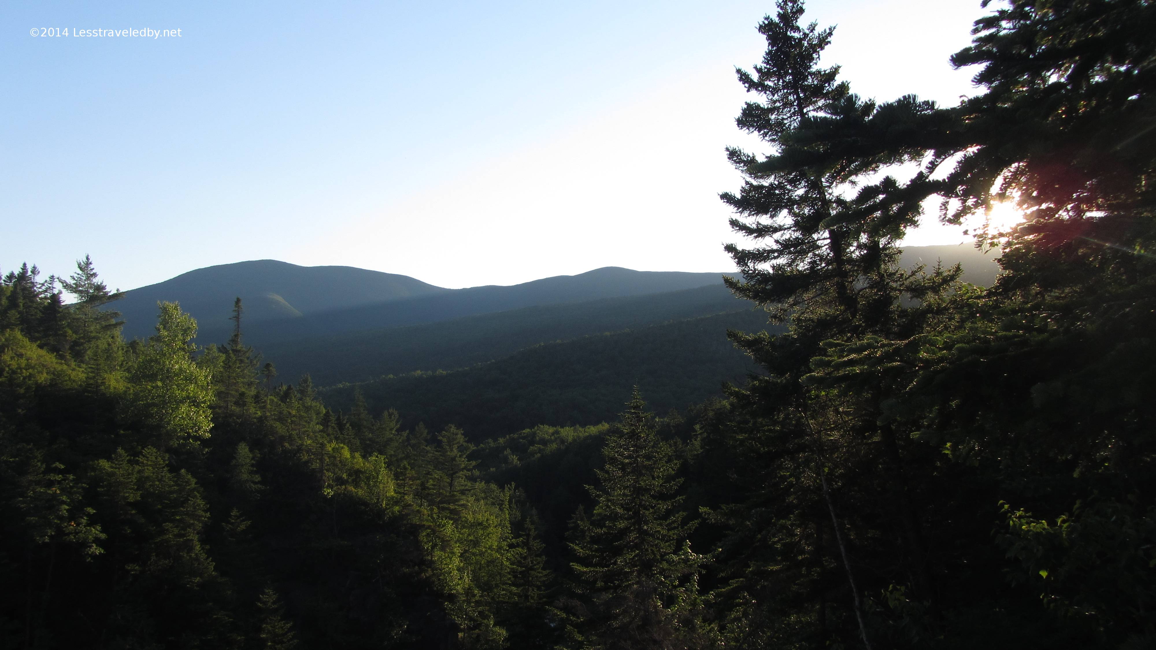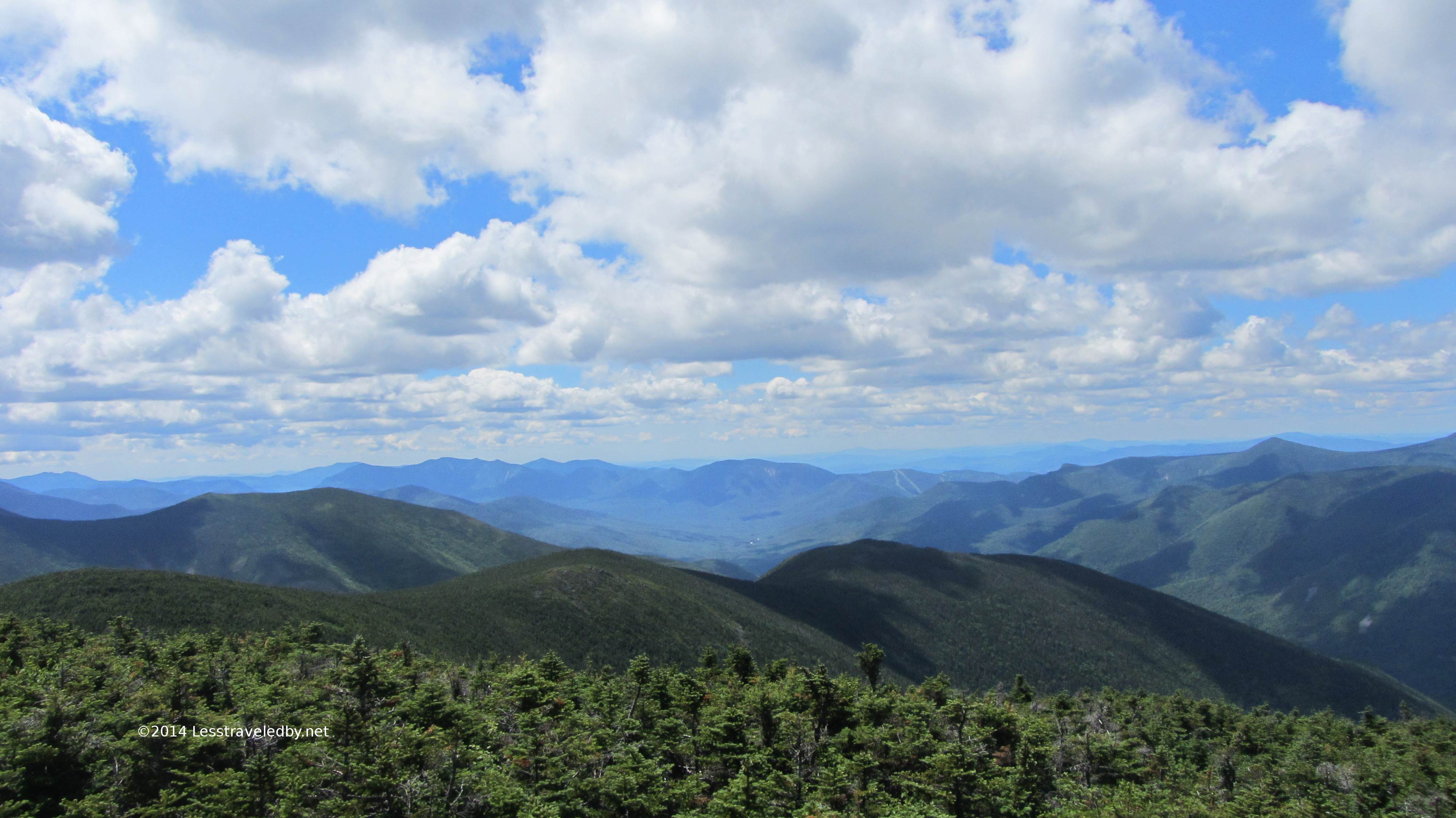 Just in case the next climb sapped my will to live I also stopped to enjoy the view looking back towards where I’d come in the day before. I came up the right side of the valley in the foreground that morning, but that large valley beyond is where Franconia Brook runs and the trail I’d been on the day before. In the far distance I believe that is Loon Mt ski runs that can just barely be made out.