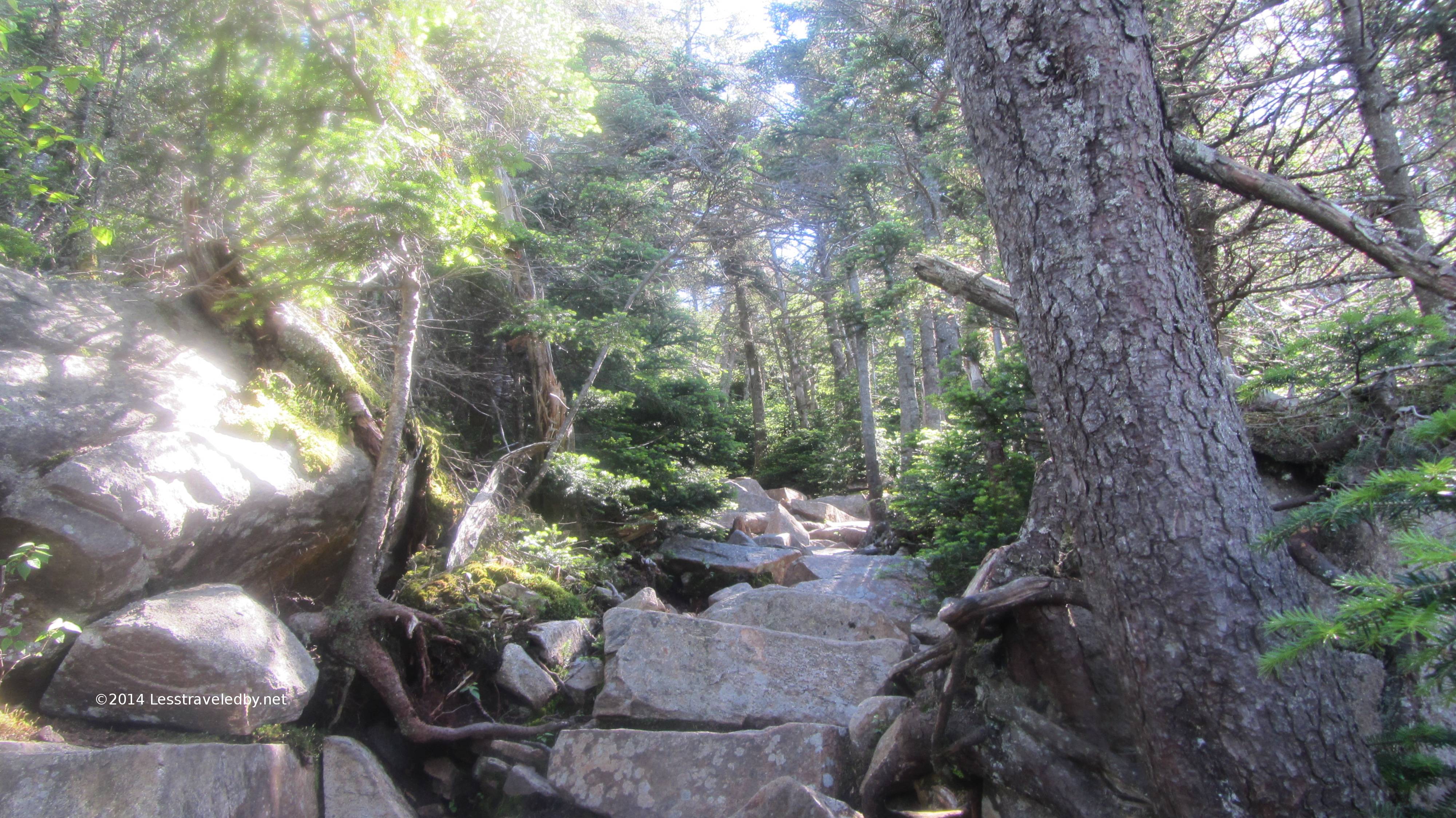 This being what the trail looked like might have something to do with that heh. It was steeper in parts but invariably just a big pile of rocks all the way up. Much of the AT is like that through the NE states due to erosion. The heavy foot traffic combined with the weather wears away any surface dirt. In good areas you get staircase like rock piles. In bad areas you get boulder puzzles you have to figure out how to get over, under or around. This trail was actually pretty good by those standards.