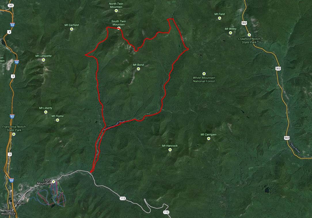 Day 2: Up the Twin Brook Trail to Galehead then along the Twinway (AT) Trail up to South Twin, past the Bond area, across to Zealand Peak and down to Zealand Falls. Picking up Ethan Brook (AT) out to the Thoreau Falls Trail. Roughly 12 miles with some serious ups and downs.
