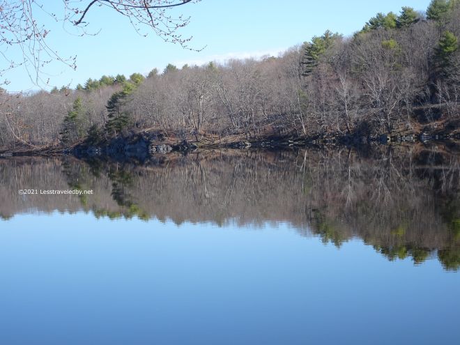 Last year the snow was several feet deeper when I was here. It was strange to see rocks in places and even open water in a few spots.