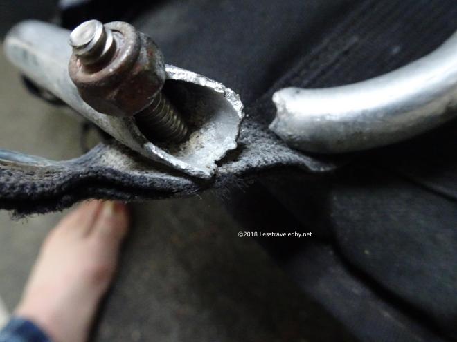That fractured aluminum tube in the picture is the base of the frame from my backpack. After tearing down camp on the morning of day 3 of a family Baxter trip we were ready to get an early start heading to our next site. Throwing my pack on was the final thing to be done and when I tossed it up onto my back there was an odd snapping sound and I could feel the pack lose its shape, slumping off my shoulders. Can’t recall if there was any cussing, but there definitely was some adrenaline. We were only about 3 miles from the nearest trailhead, but the Daddy Pack is key to moving the majority of the weight and a large part of the volume as far as the entire family gear load.