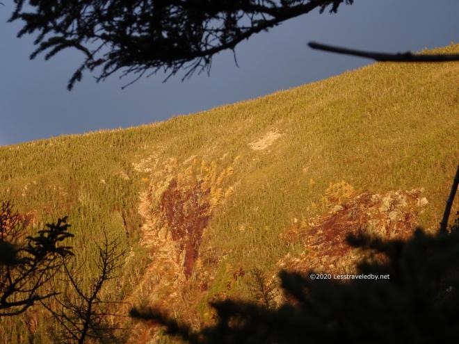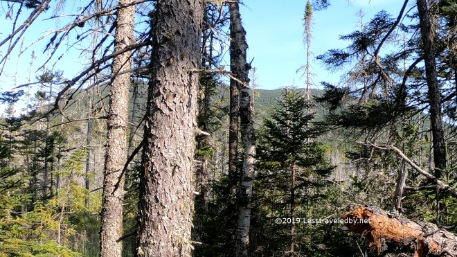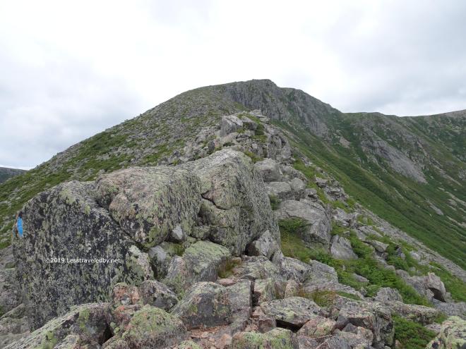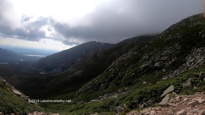 This is looking back up the Hamlin Ridge Trail after we’d come down a bit. We had some regrets about not taking the shorter route back to Chimney Pond, but decided those were better than the regrets we’d have had if we’d missed out on coming this way.