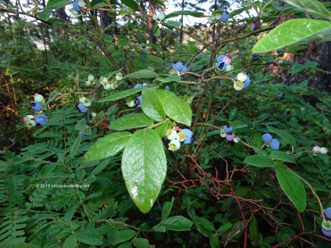 On the way back to the LT I noticed some of the blueberries were looking ripe. Tasted darn nice as a pre dinner snack. A storm passed over and left everything wet, but we timed it well and were under the roof when it hit.