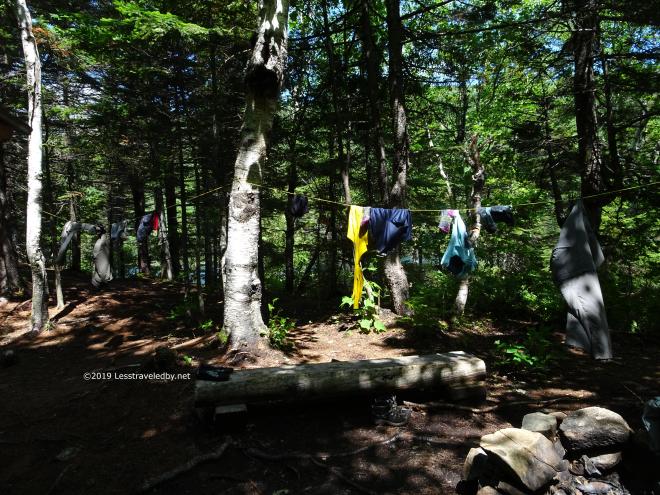 We put on our dry camp clothes and put the wet stuff out to drip dry. This site is one of the prettiest in the park and we weren’t going to let a little wet stop us from enjoying it.