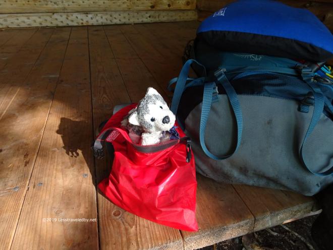 Our faithful companion and mascot for the two weeks, Huskie Dog! Often known to say “Arrooo?” he was howling with the call of the wild on making his first summit a visit to the Greatest Mountain.