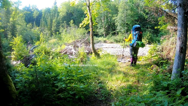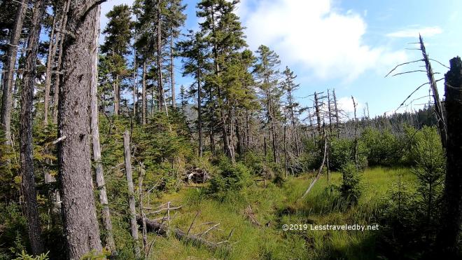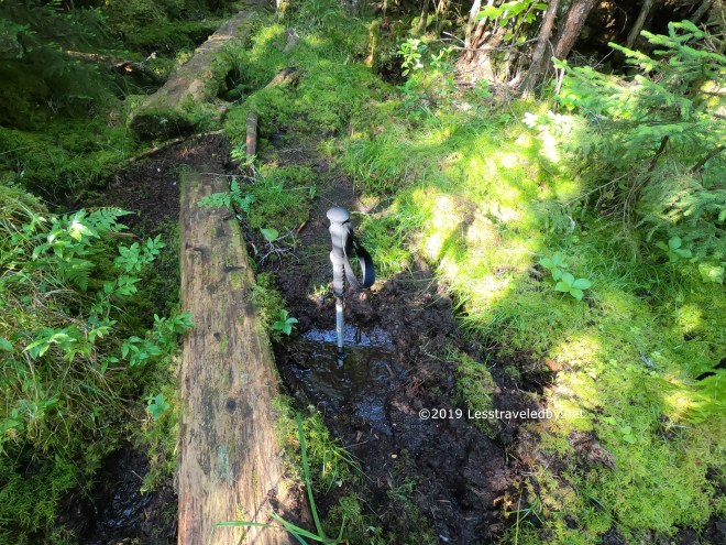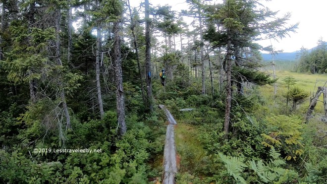 Hiking past the inlet bog the next morning we were happy for more sunshine. This trail is wet enough without more rain.