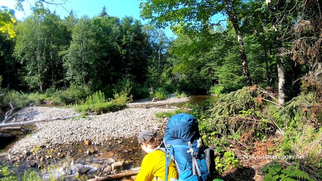 The hike past Little Wassataquoik in the morning light was very pretty. A little bumpy to start and then down towards the big lake below. We’d be staying there the following night, but today were headed to Russell.
