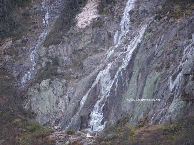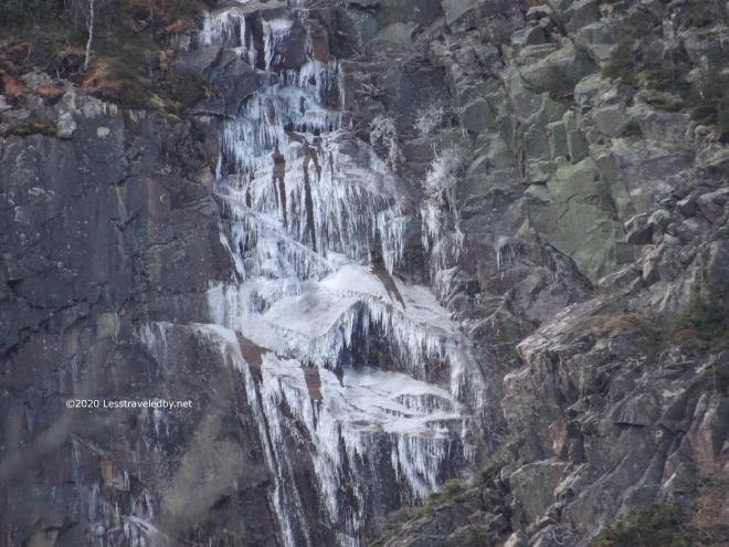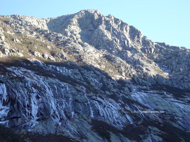 Chimney pond chilly evening views. It warmed from low 30s to low 50s by morning. The sound of ice crashing down was frequent in the distance.