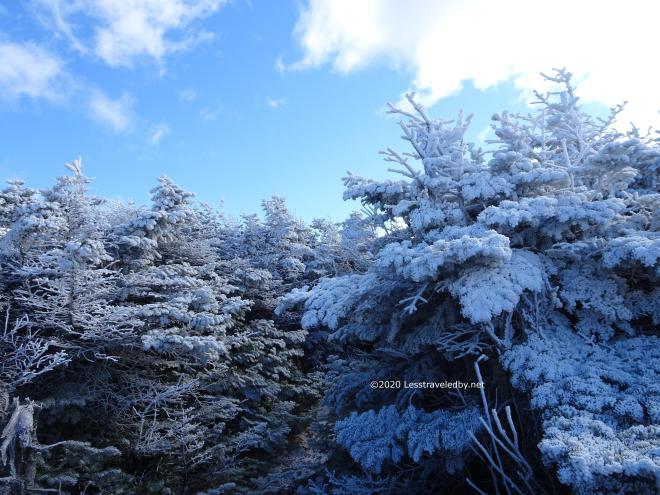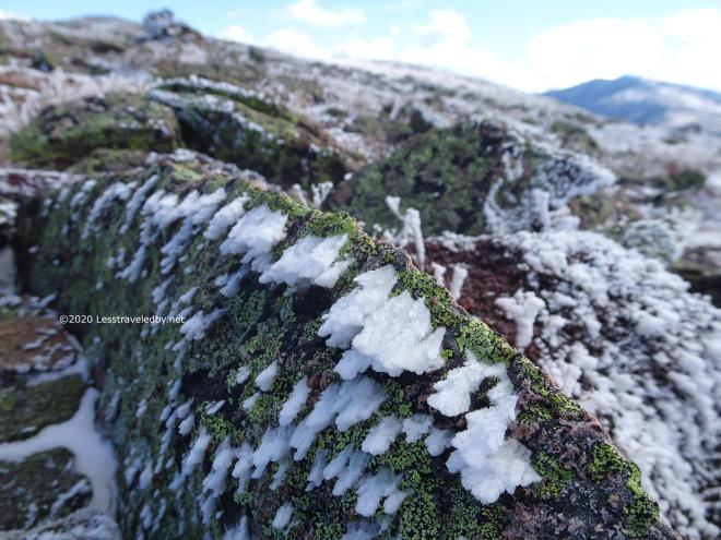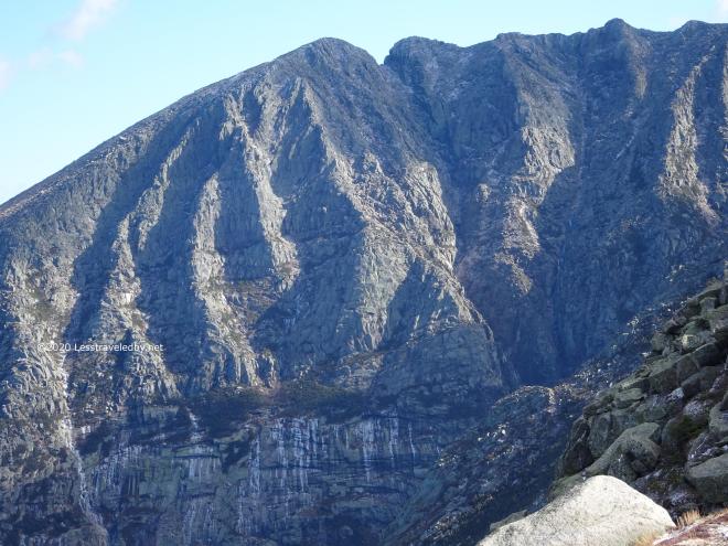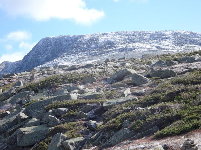 We were the first folks signed out the next morning and didn’t see another human until we reached the summit. Pamola had done his worst the day before and appeared content to let us climb so we did.