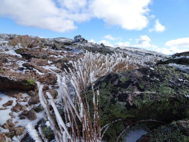 We were glad we’d gotten an early start and reached the summit by 10am or so. A steady stream of arrivals turned into a torrent and we fled back towards the tablelands after less than an hour at the peak.