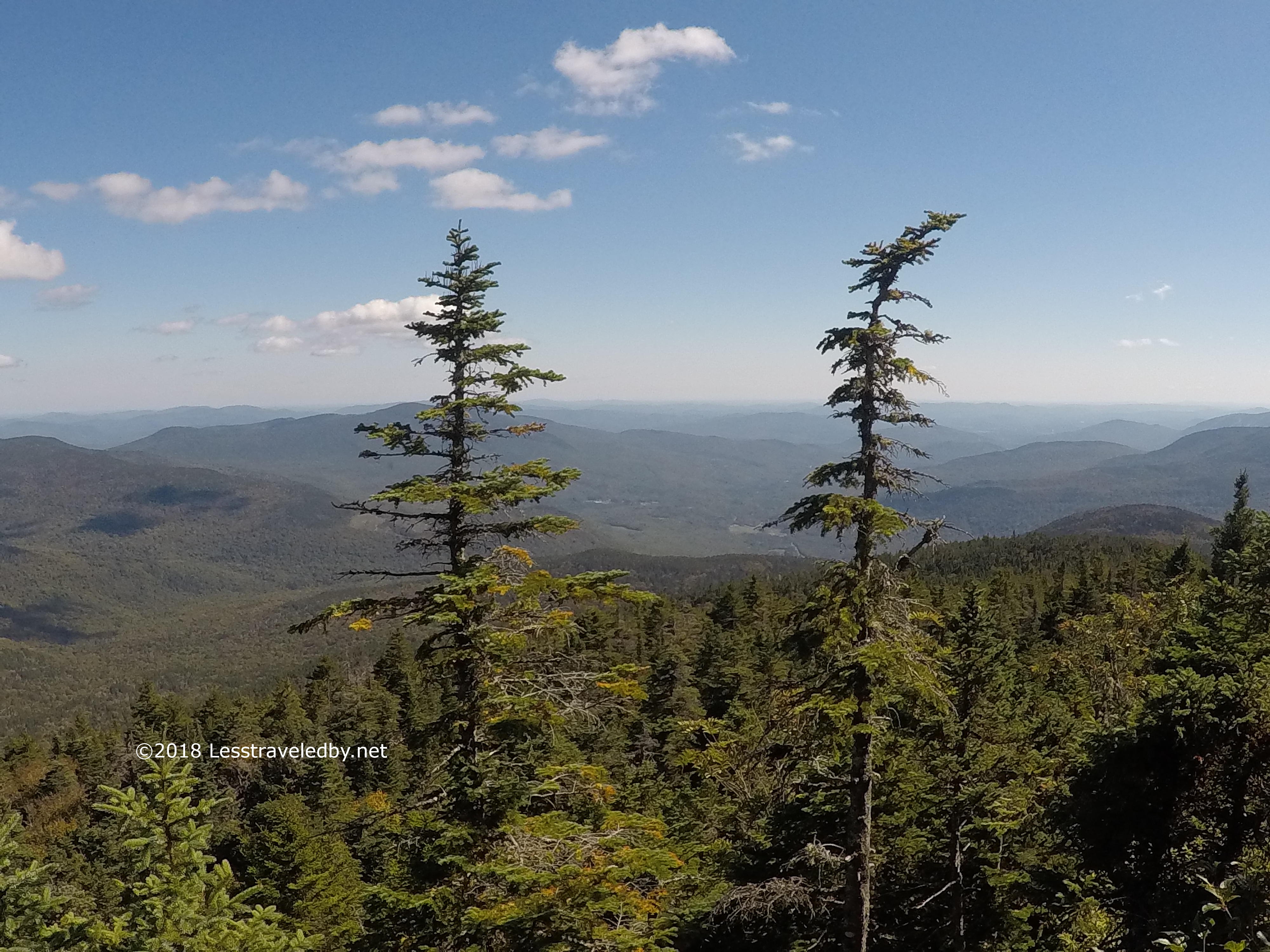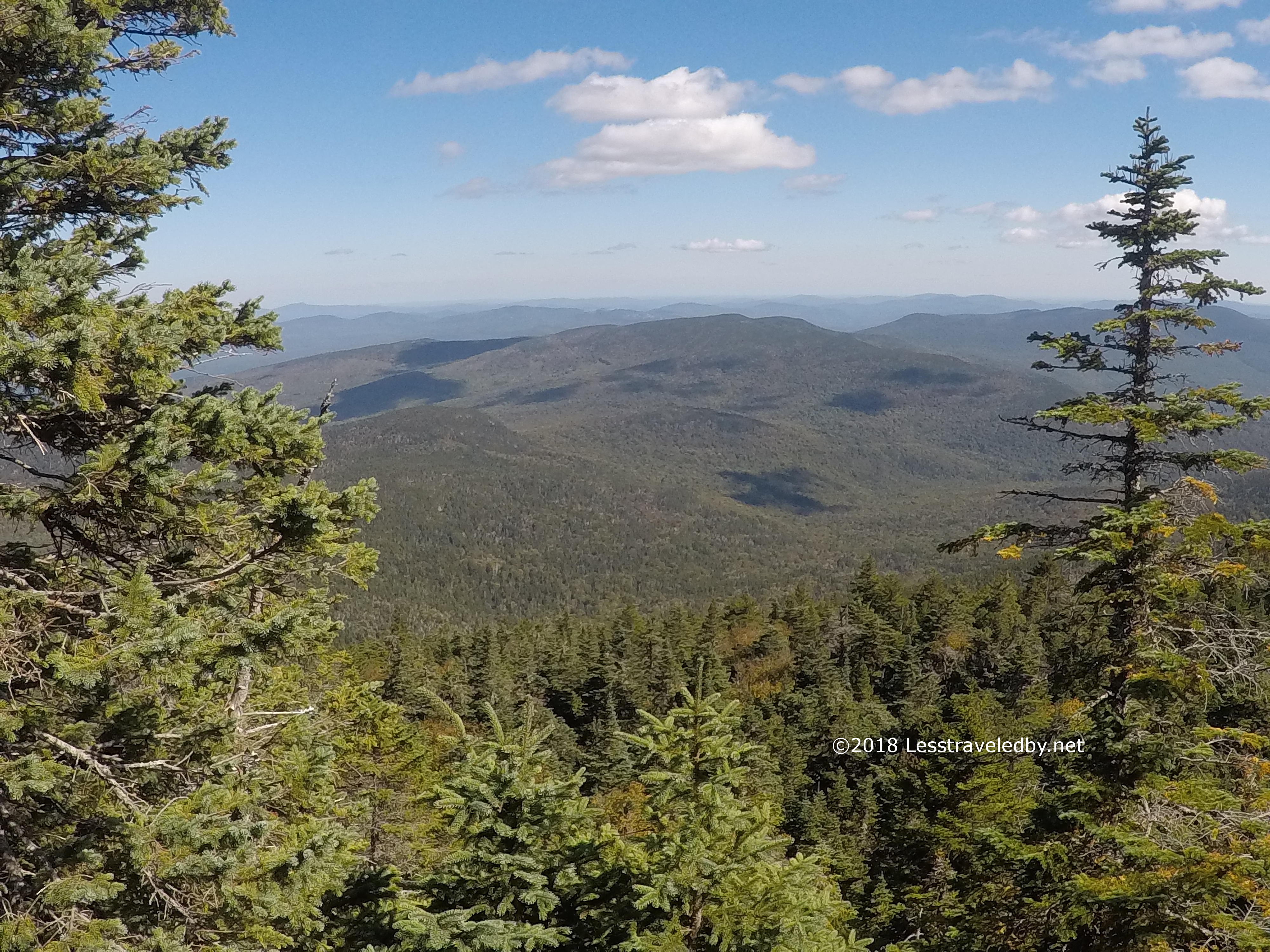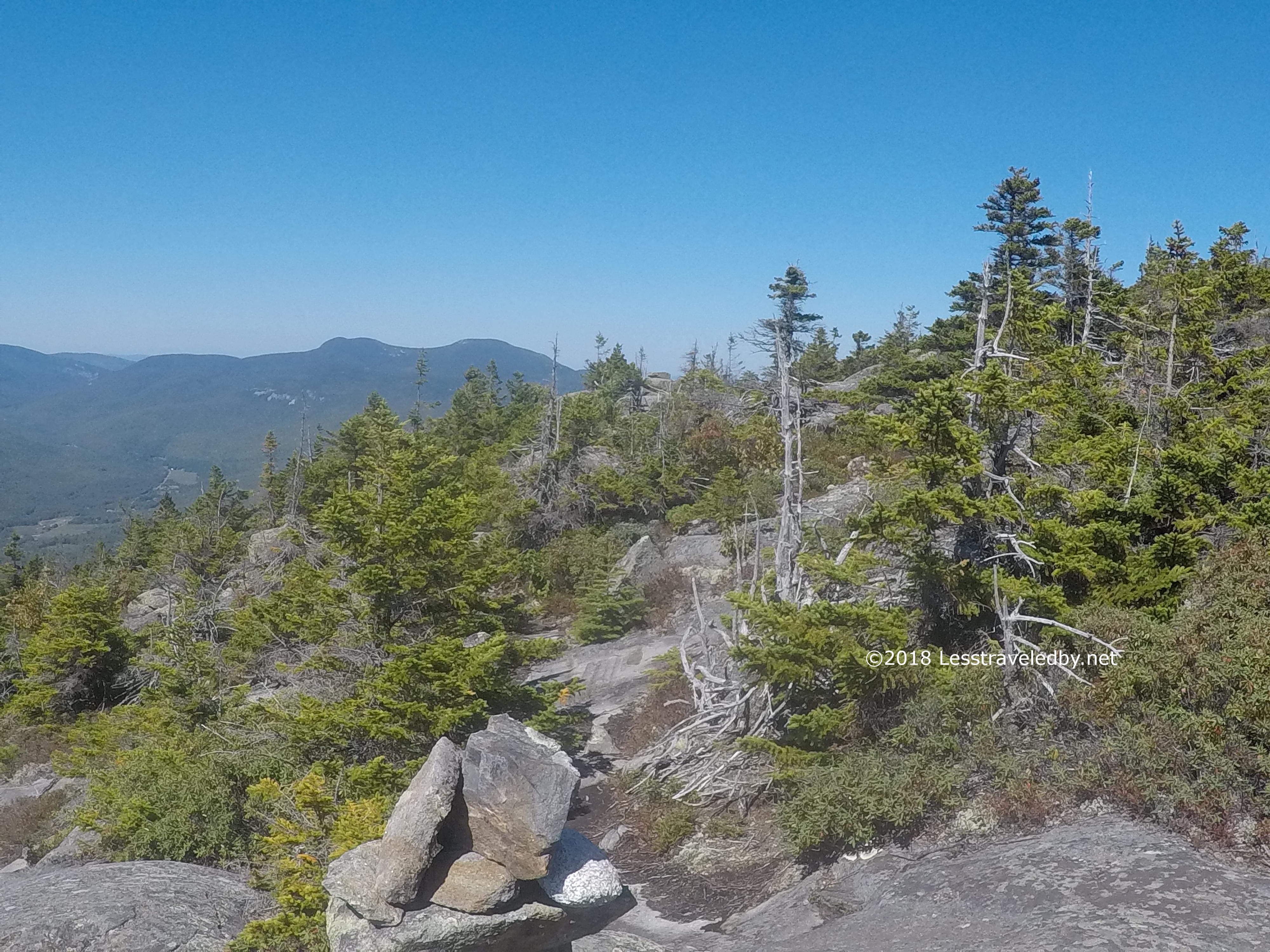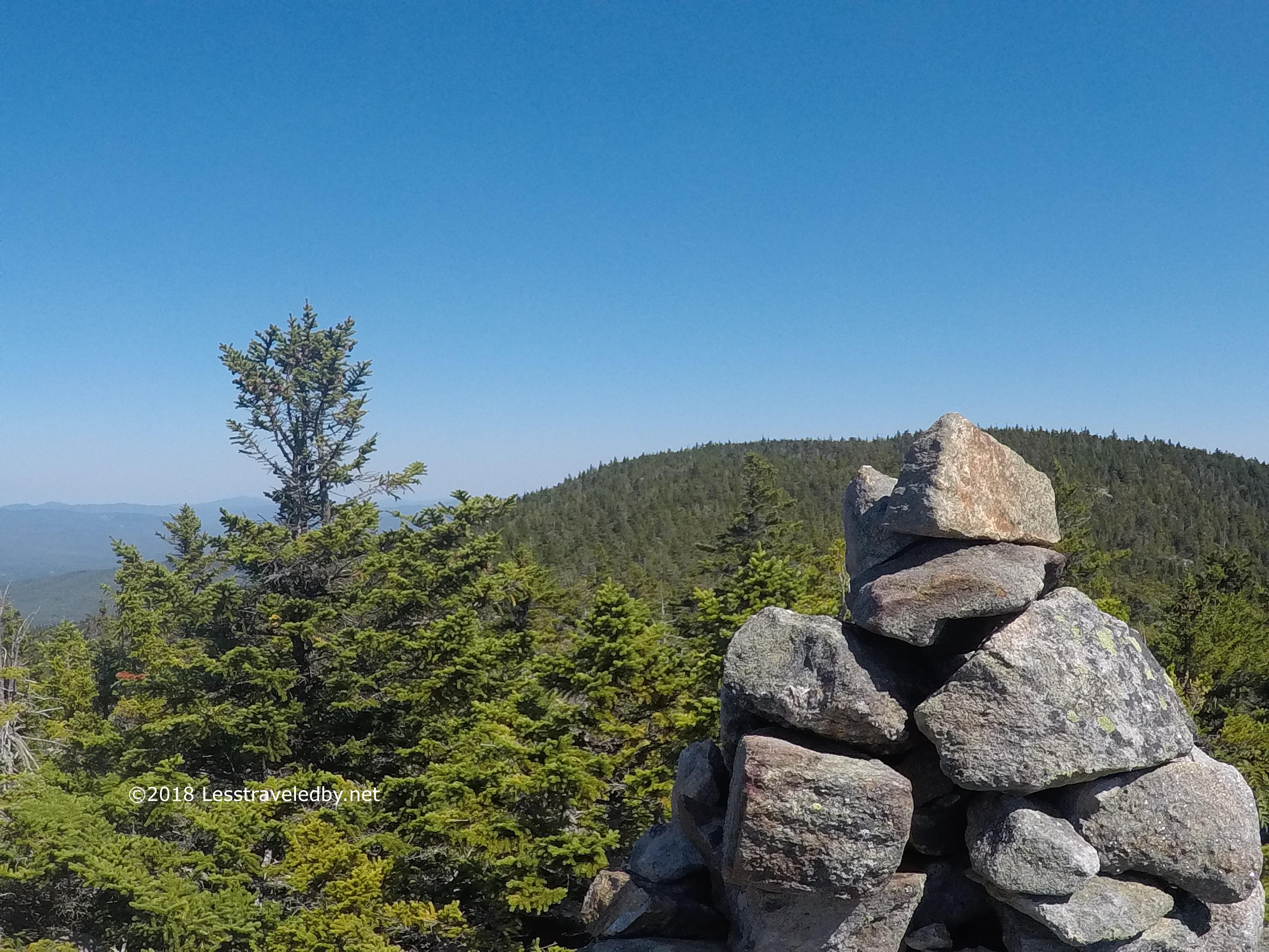 It was almost 2 by the time I reached the summit, but no matter what the clock said, it was cheese and sausage time. Oddly for mid October there was a swarm of small black flies up there. Looking at them they didn’t seem to be Black Flies, but some other tiny fly that was black. Many were slaughtered as I enjoyed my late lunch, though I imagine a few enjoyed eating me as well.