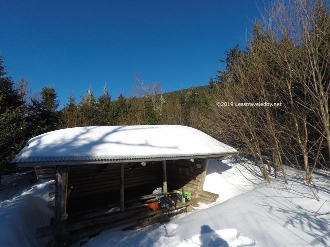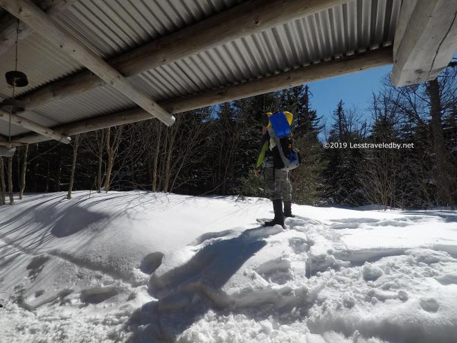The shelter was well buried, but the wind had swept the front cleaner than other years. The snow over all was deeper than I was used to, but the wall in front wasn’t there. That blue sky was amazing. I recall worrying that I was missing the good day.