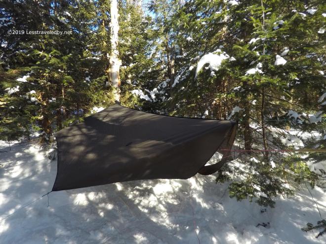 I had things to attend to though, so the summit would have to wait. First I wanted to get the hammock up and try out the new tarp. This one has doors on the ends and may become the distance shelter. That blowout on the Cohos last Fall made me see the benefits of doors heh.