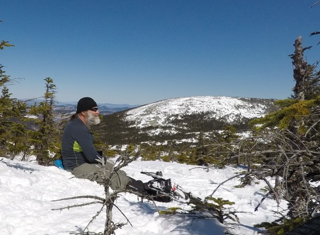 Nice views of the Whites on the other side of the border in NH. Spring is eating into the snow and the wind has helped in that regard. Won’t be long and there will be plenty of mud, at least down low.