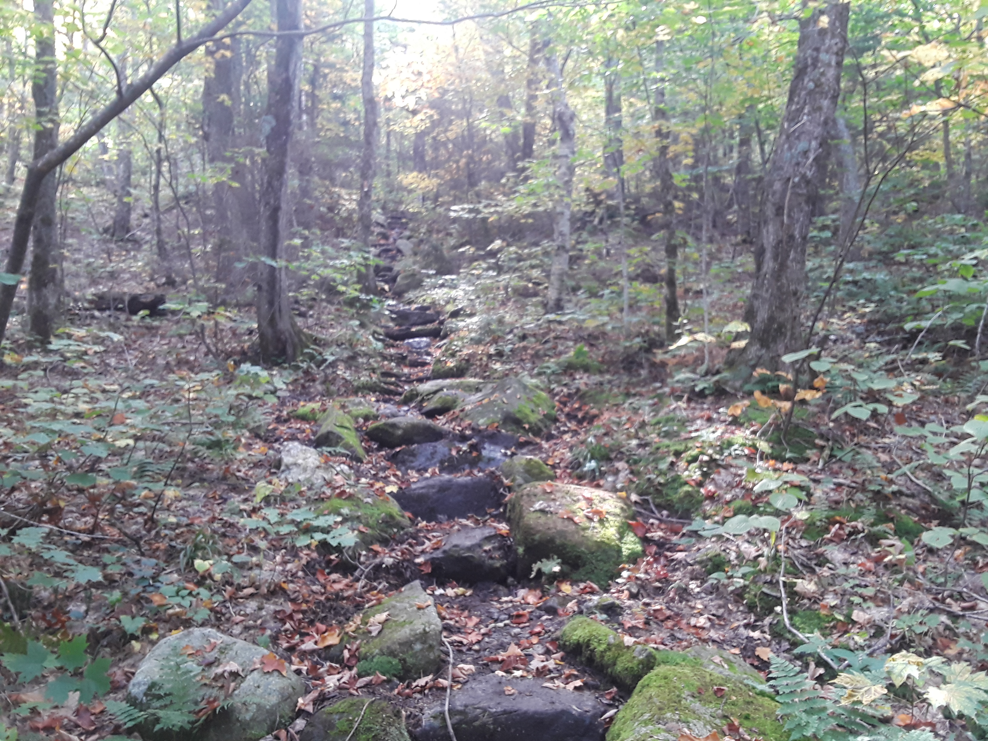 Rather than focus on my troubles I opted to try to enjoy how pretty of a place I was walking through. There were a few dog encounters along the way, a German Shepherd that looked like it might have been abandoned threatened me for a while until a voice in the woods called him home. Another two big dogs followed me, barking at my heels, for a good quarter mile.