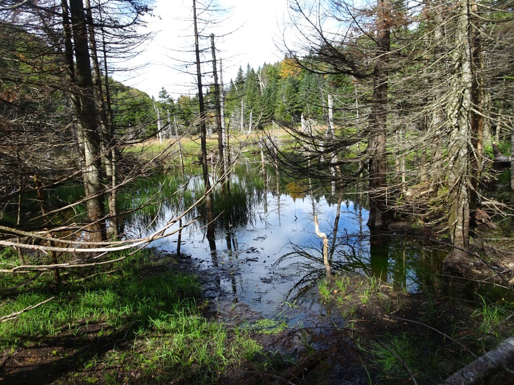 It was almost 2 by the time I reached the summit, but no matter what the clock said, it was cheese and sausage time. Oddly for mid October there was a swarm of small black flies up there. Looking at them they didn’t seem to be Black Flies, but some other tiny fly that was black. Many were slaughtered as I enjoyed my late lunch, though I imagine a few enjoyed eating me as well.