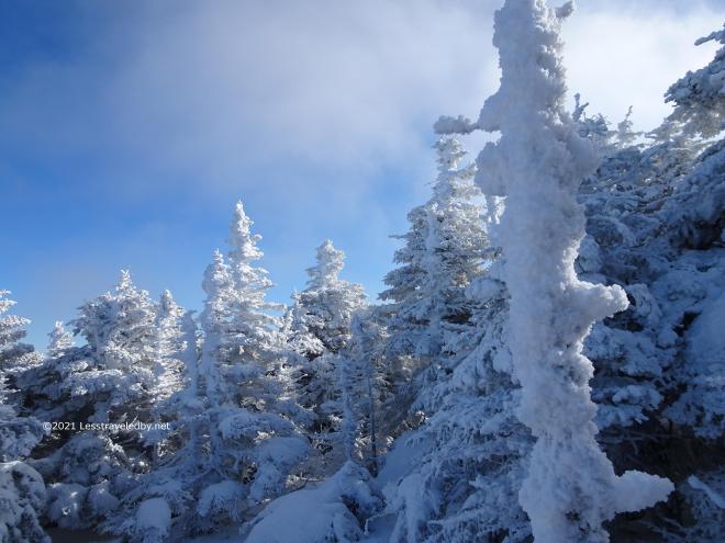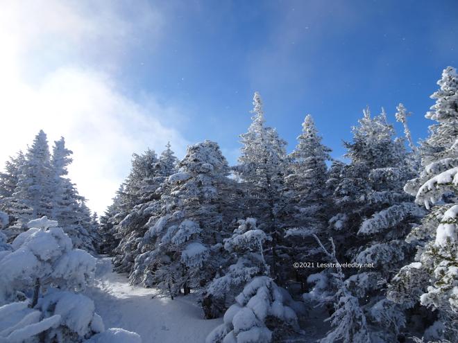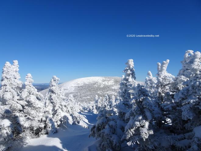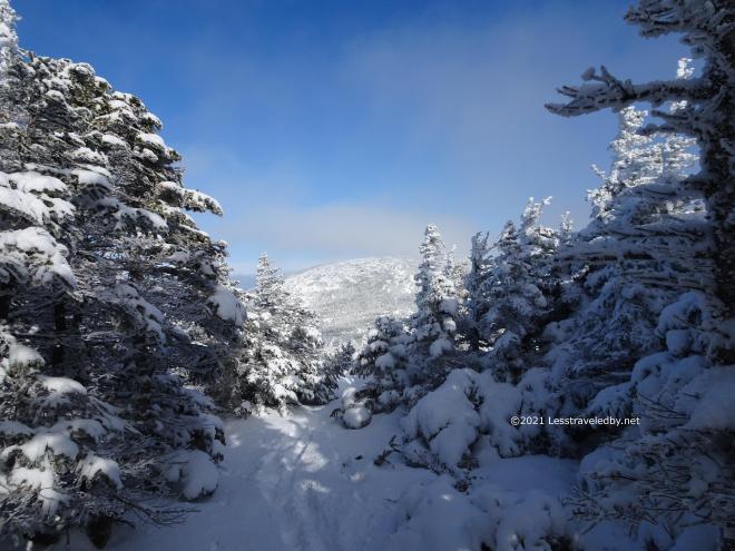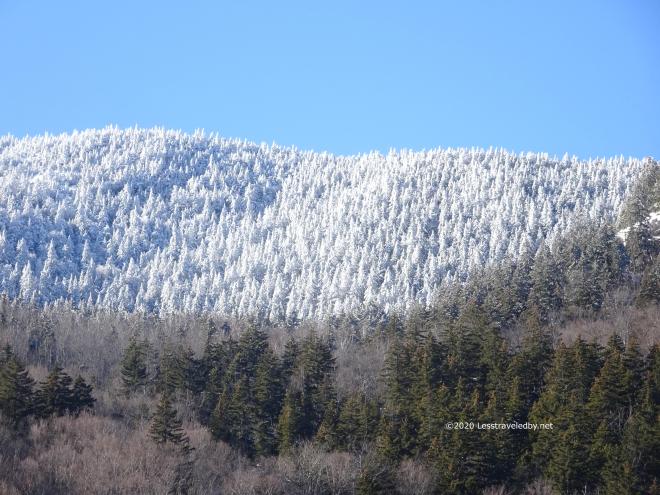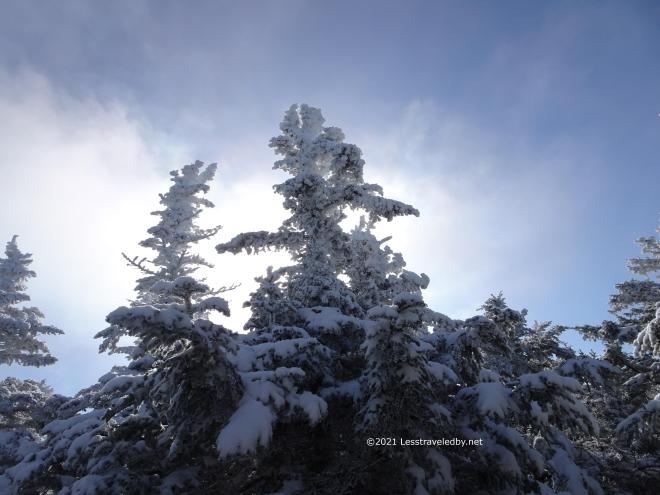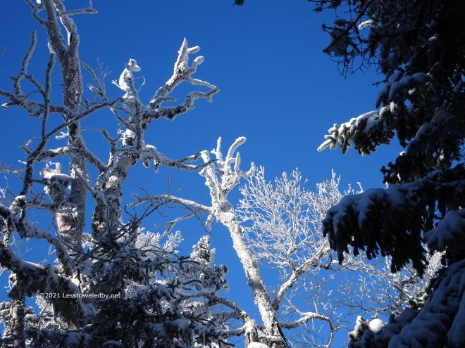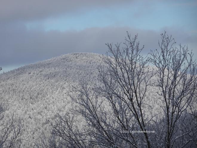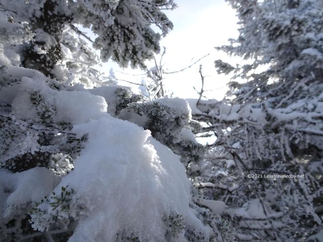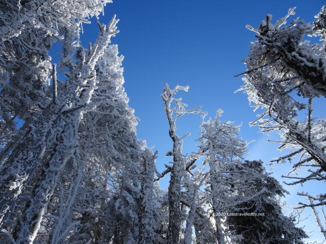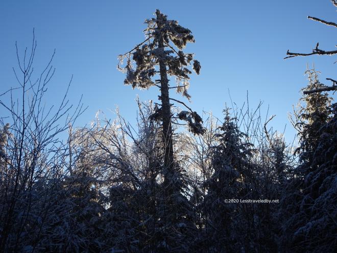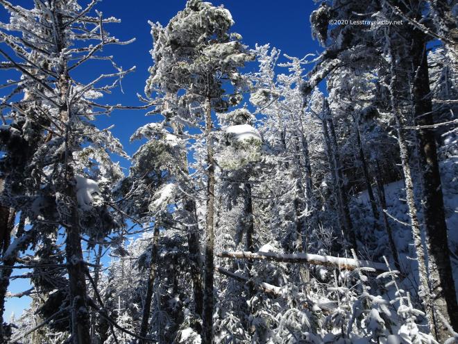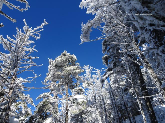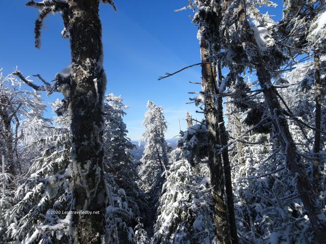The view up towards Old Speck looked frosty with the higher elevation trees coverd in rime.