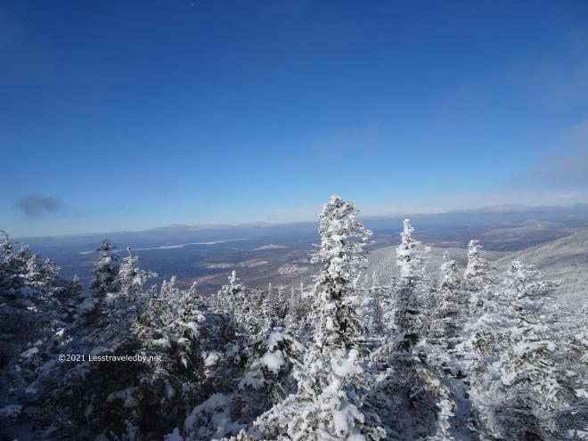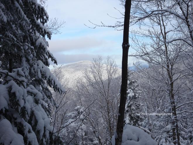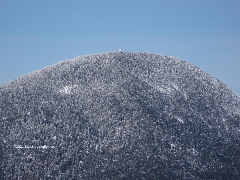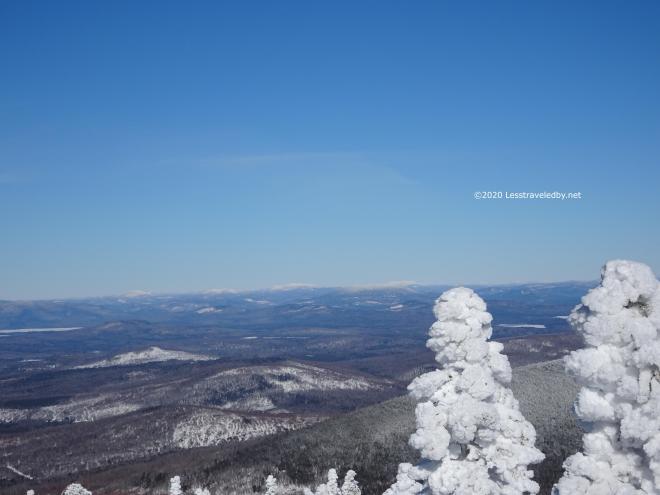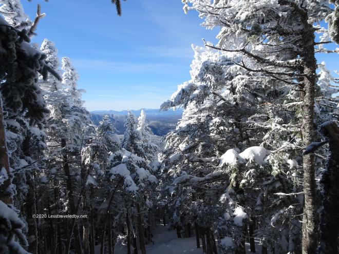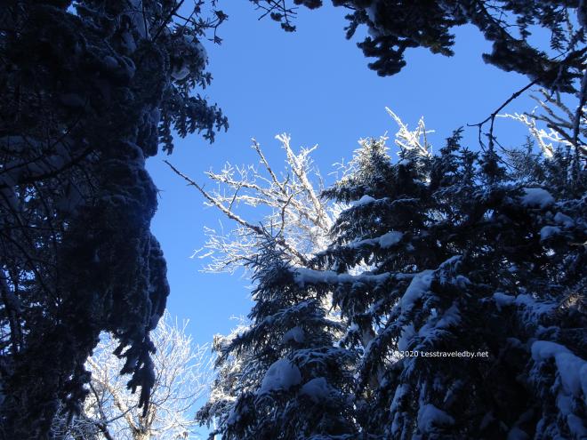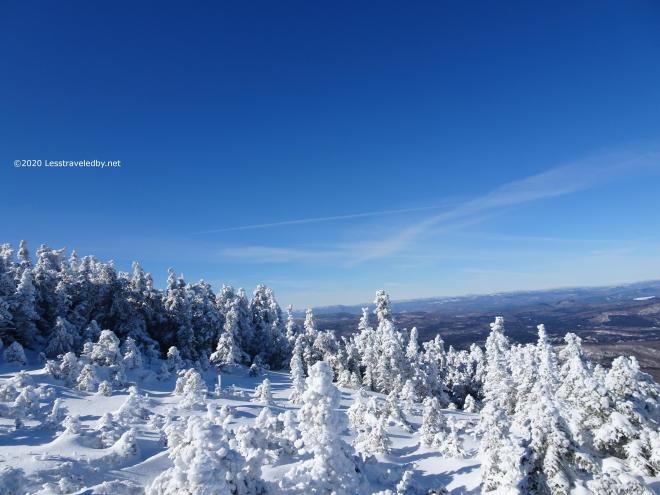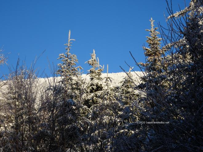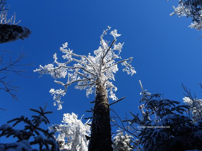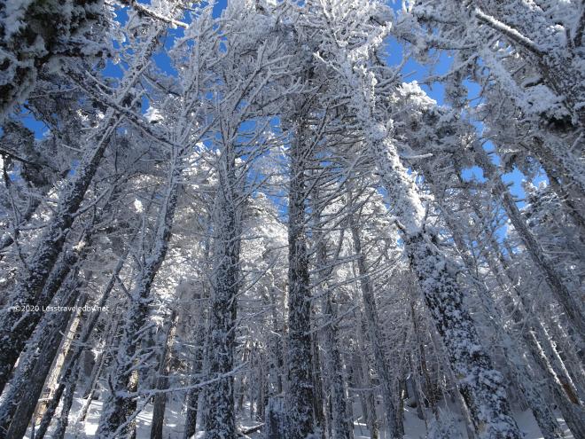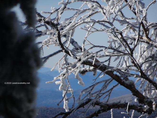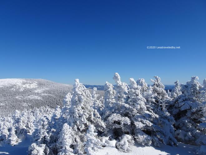 The view up towards Old Speck looked frosty with the higher elevation trees coverd in rime.