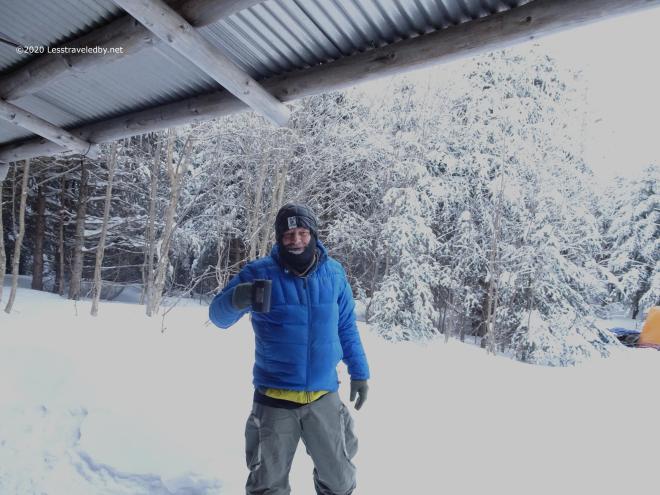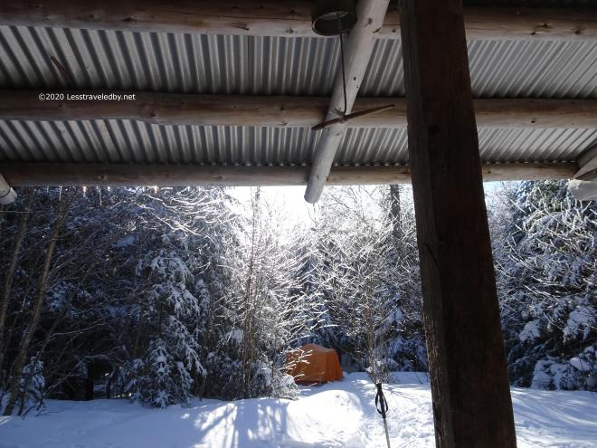 I prefer not to sleep in this shelter, but I love the way it catches the winter sun in the afternoon. A great place to hang out and melt snow. Digging in my food bag I found the extra meal I’d tossed in was lasagna, which made an excellent late lunch.