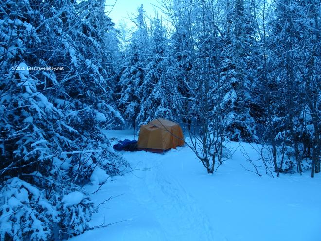 This will mostly be a photo dump from summit day. I shot 22G of video on the trip so the whole story will come out soon, but I saved the still camera for the good part. The hike in to the Sargent Brook tent site was definitely an adventure. I followed some old tracks over Bald Mtn and up towards Stowe Mtn but they wandered off into the woods and then turned back. After that it was a combination of guessing and GPS that led me to the Sargent Brook tent site about noon on the second day.