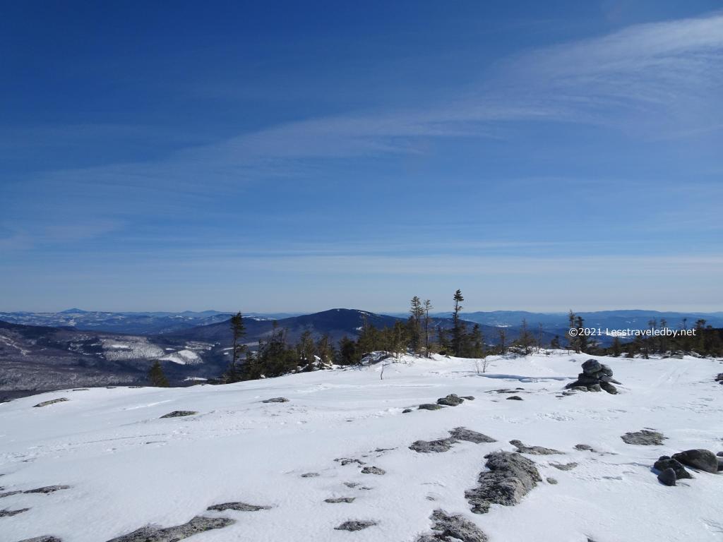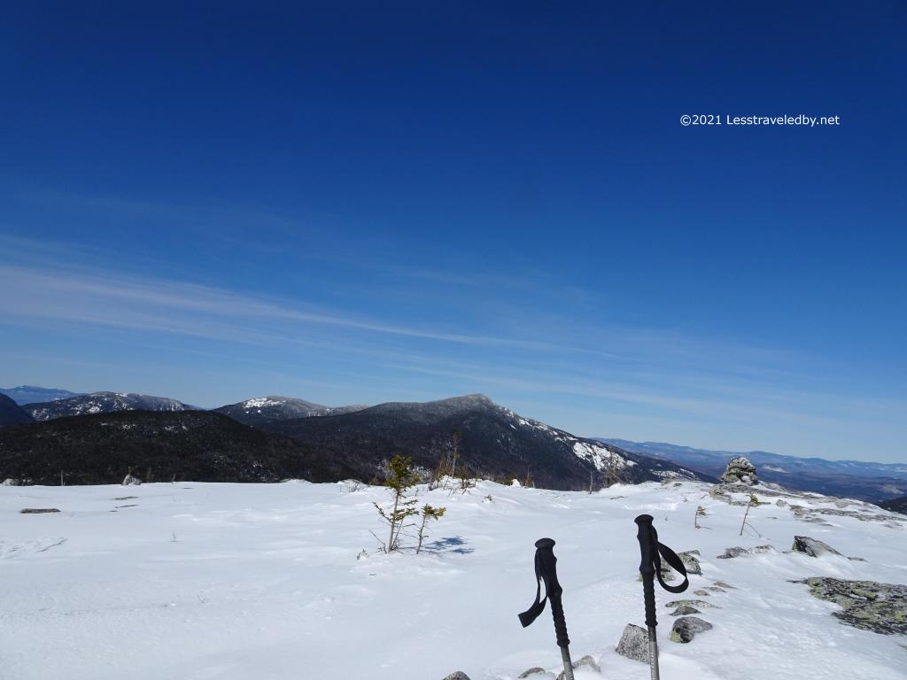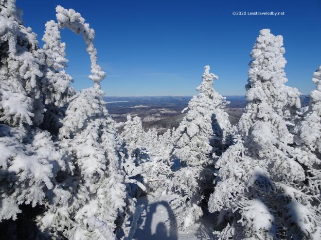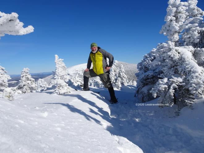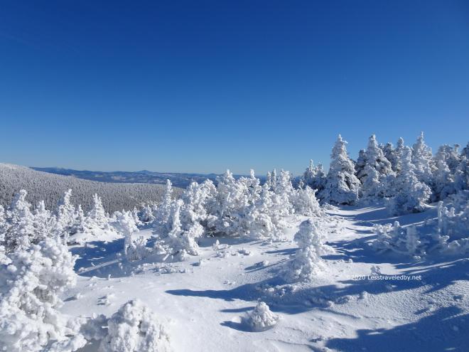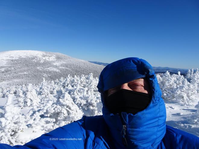 Within a few minutes of reaching the summit I was reaching for insulation! Thankfully there was only a small breeze, but it was danger type cold up there. Time for the -30°F rated jacket and a face mask. Even well protected I was acutely aware of the importance of not pushing my luck up there. Solo hiking is always about being safe, but especially in these conditions.