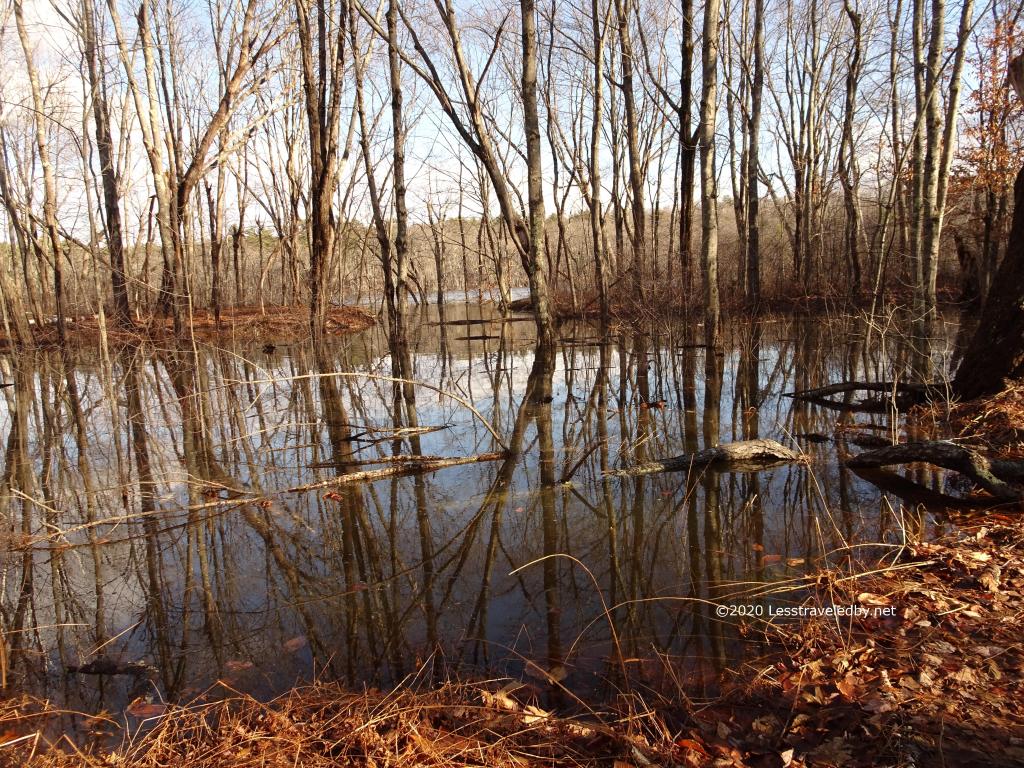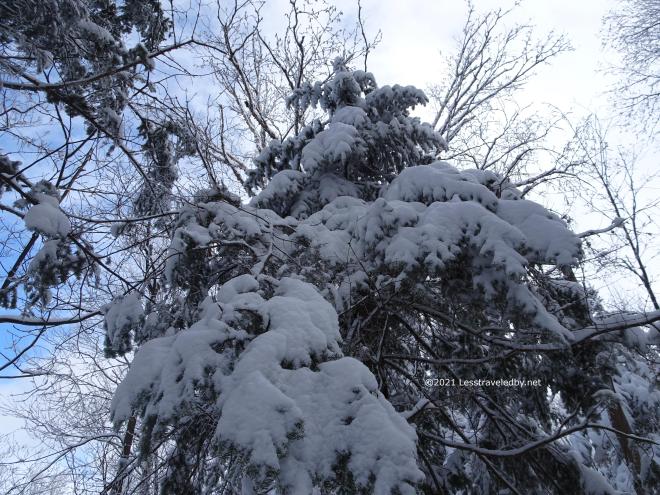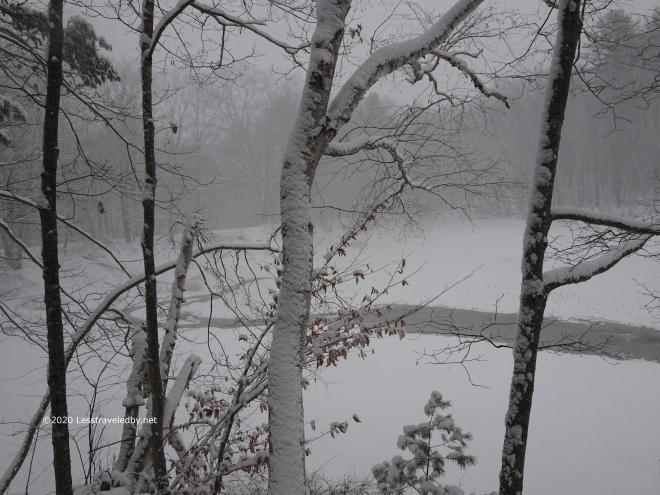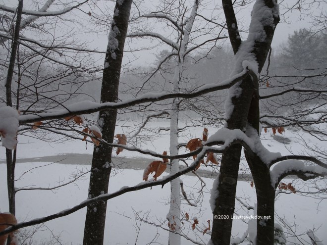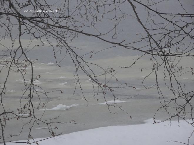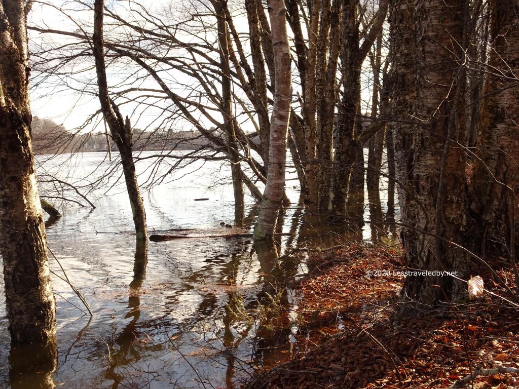 Last year the snow was several feet deeper when I was here. It was strange to see rocks in places and even open water in a few spots.